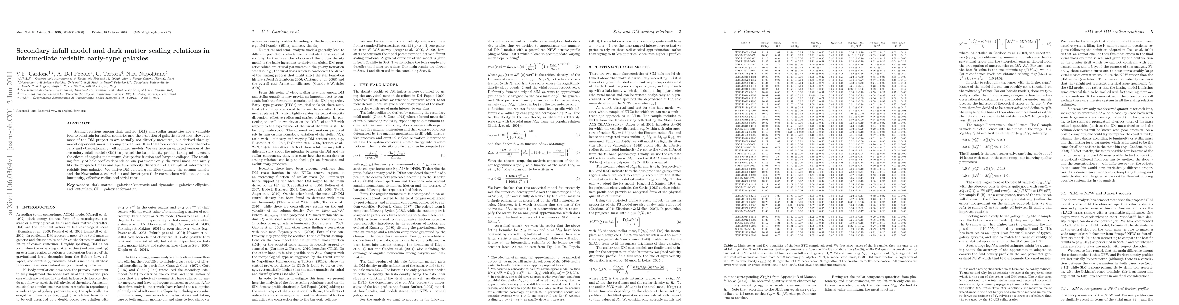 Scaling relations among dark matter (DM) and stellar quantities are a valuable tool to constrain formation scenarios and the evolution of galactic structures. However, most of the DM properties are actually not directly measured, but derived through model dependent mass mapping procedures. It is therefore crucial to adopt theoretically and observationally well founded models. We use here an updated version of the secondary infall model (SIM) to predict the halo density profile, taking into account the effects of angular momentum, dissipative friction and baryons collapse. The resulting family of halo profiles depends on one parameter only, the virial mass, and nicely fits the projected mass and aperture velocity dispersion of a sample of intermediate redshift lens galaxies. We derive DM related quantities (namely the column density and the Newtonian acceleration) and investigate their correlations with stellar mass, luminosity, effective radius and virial mass.