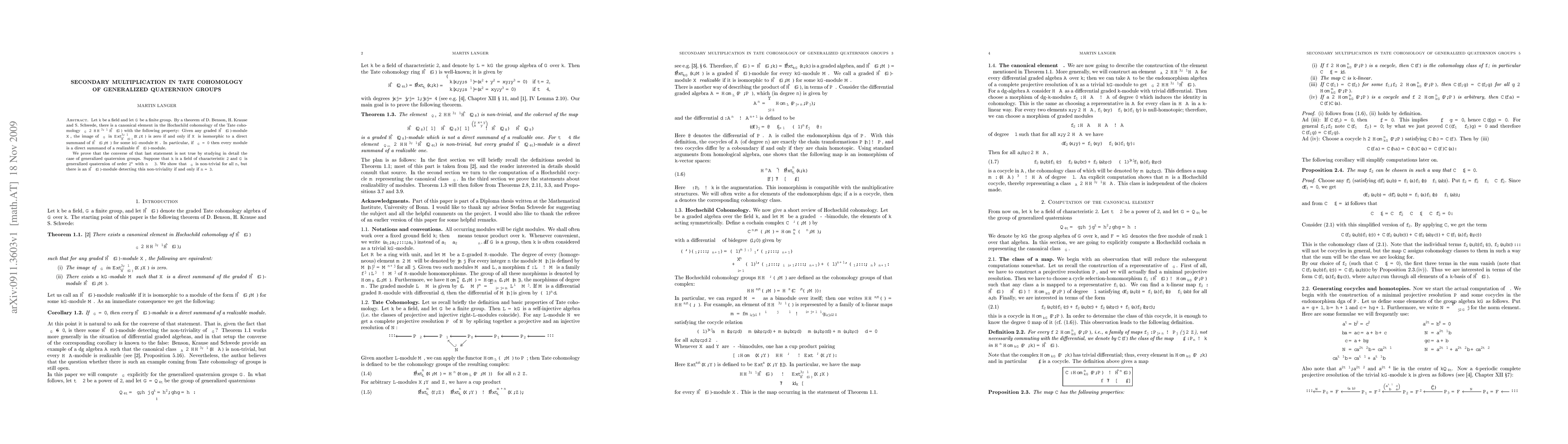 This paper investigates the Tate cohomology of generalized quaternion groups and demonstrates that the vanishing of a canonical element in Hochschild cohomology does not imply every module is a direct summand of a realizable module. Specifically, for generalized quaternion groups of order 2^n with n>2, the canonical element is non-trivial, but only for n=3 does an H*(G)-module exist to detect this non-triviality.