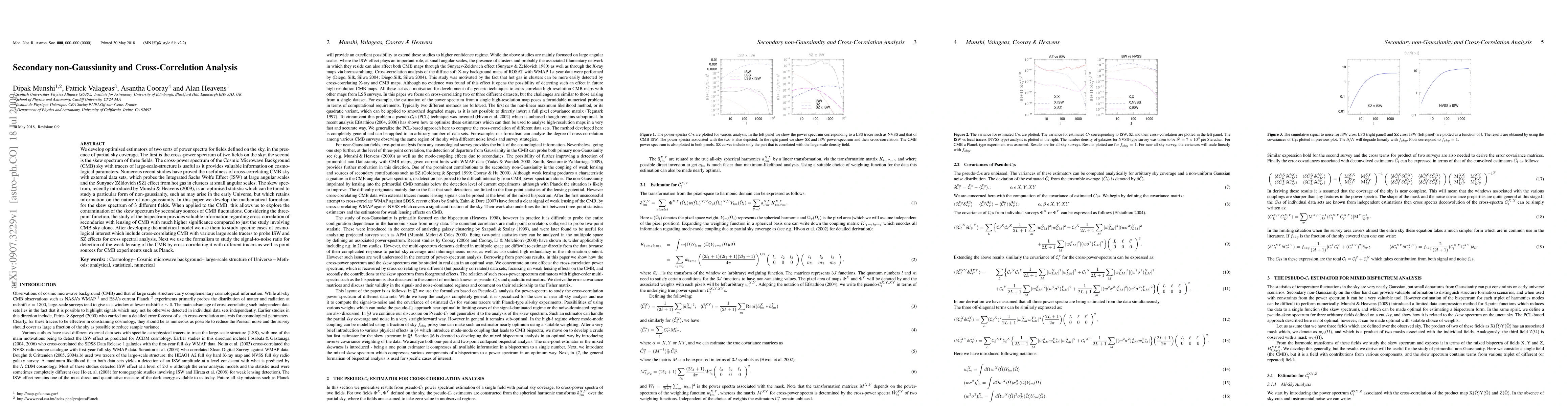 We develop optimised estimators of two sorts of power spectra for fields defined on the sky, in the presence of partial sky coverage. The first is the cross-power spectrum of two fields on the sky; the second is the skew spectrum of three fields. These can probe the Integrated Sachs Wolfe Effect (ISW) at large angular scales and the Sunyaev Z\'eldovich (SZ) effect from hot gas in clusters at small angular scales. The skew spectrum, recently introduced by Munshi & Heavens (2009), is an optimised statistic which can be tuned to study a particular form of non-Gaussianity, such as may arise in the early Universe, but which retains information on the nature of non-Gaussianity. In this paper we develop the mathematical formalism for the skew spectrum of 3 different fields. When applied to the CMB, this allows us to explore the contamination of the skew spectrum by secondary sources of CMB fluctuations. Considering the three-point function, the study of the bispectrum provides valuable information regarding cross-correlation of secondaries with lensing of CMB with much higher significance compared to just the study involving CMB sky alone. We use our analytical models to study specific cases of cosmological interest which include cross-correlating CMB with various large scale tracers to probe ISW and SZ effects for cross spectral analysis and use the formalism to study the signal-to-noise ratio for detection of the weak lensing of the CMB by cross-correlating it with different tracers as well as point sources for CMB experiments such as Planck (abridged).