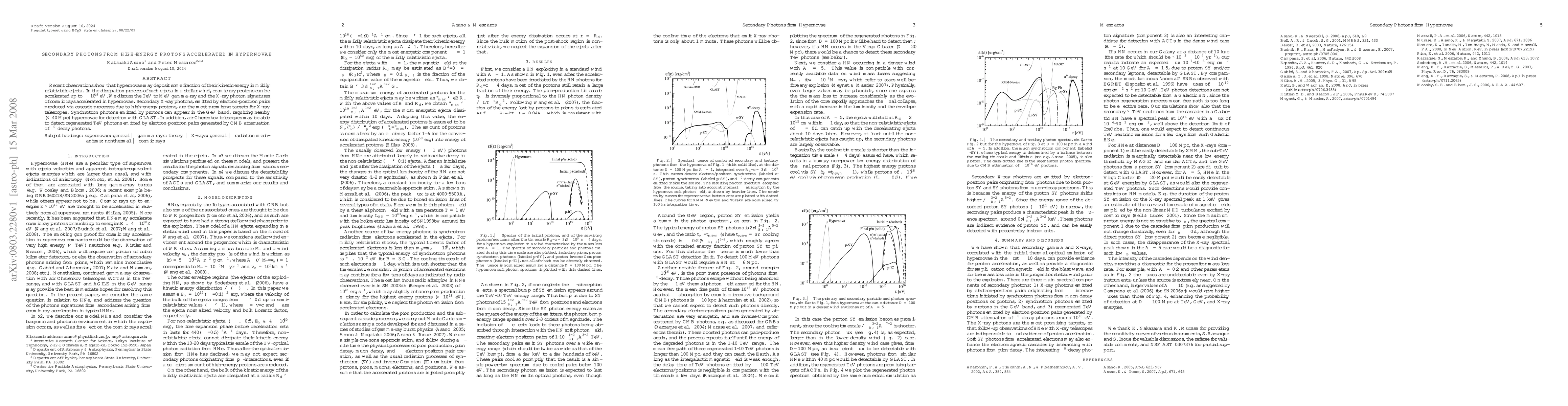 This paper explores the gamma-ray and X-ray emissions from hypernovae, focusing on secondary photons produced by high-energy protons accelerated in these events. It highlights the potential for X-ray telescopes to detect secondary X-ray photons from electron-positron pairs, while GeV photons from synchrotron processes require nearby hypernovae for detection.