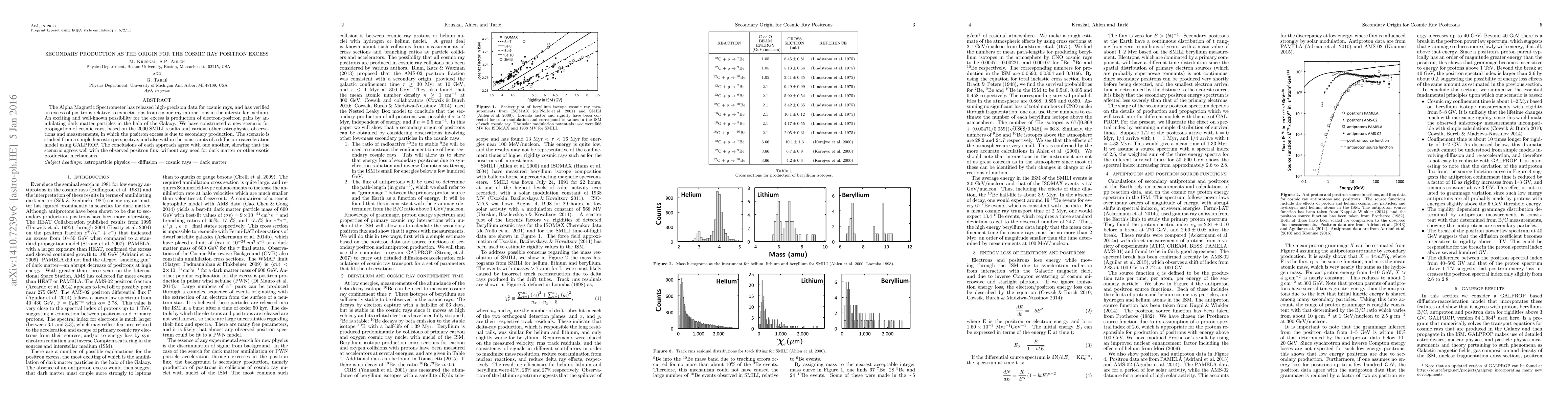The paper proposes that the observed cosmic ray positron excess is due to secondary production from cosmic ray interactions, rather than dark matter annihilation, using both heuristic and diffusion-reacceleration models. Both approaches show good agreement with observed positron flux, suggesting no need for exotic production mechanisms.