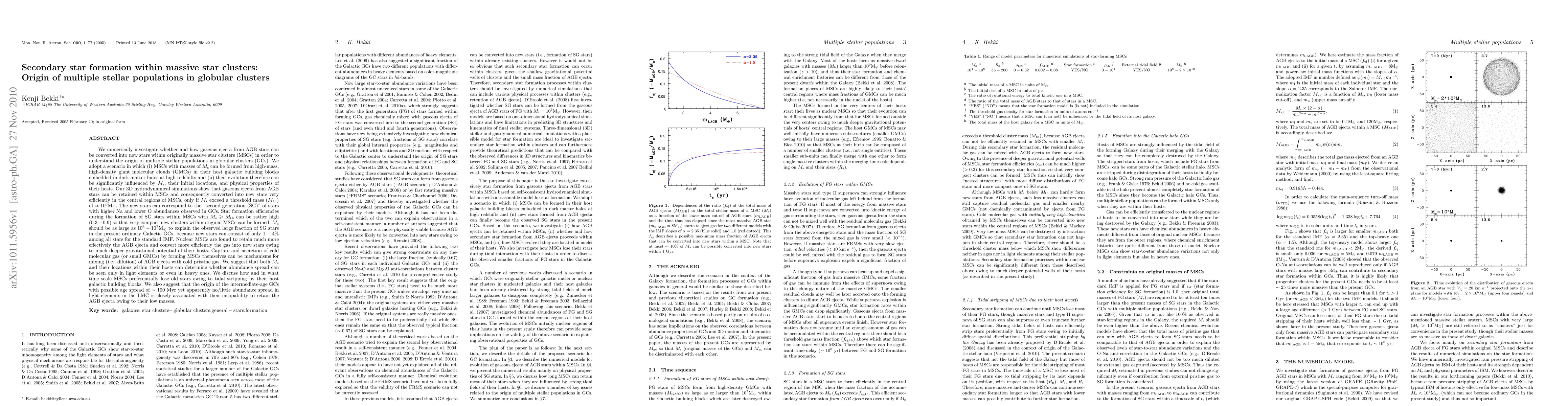 This paper investigates the formation of secondary stars within massive star clusters (MSCs) through the retention of gaseous ejecta from AGB stars, proposing a mechanism for the origin of multiple stellar populations in globular clusters. The simulations show that only MSCs with masses exceeding ~10^6 M_sun can efficiently convert AGB ejecta into new stars, forming a "second generation" with distinct chemical compositions.
