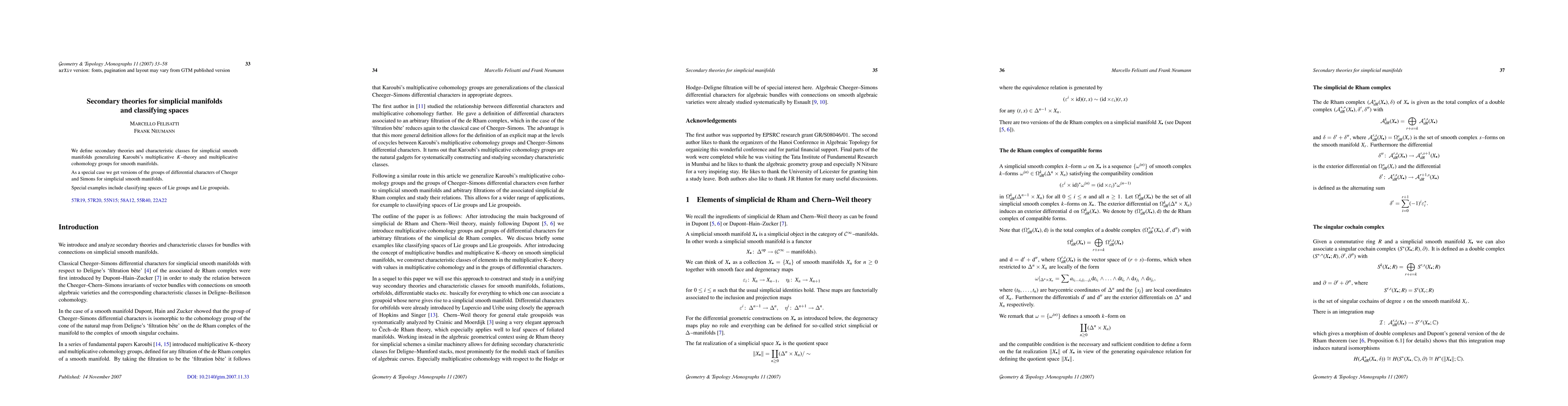 The research defines secondary theories and characteristic classes for simplicial smooth manifolds, generalizing Karoubi's multiplicative K-theory and multiplicative cohomology groups.