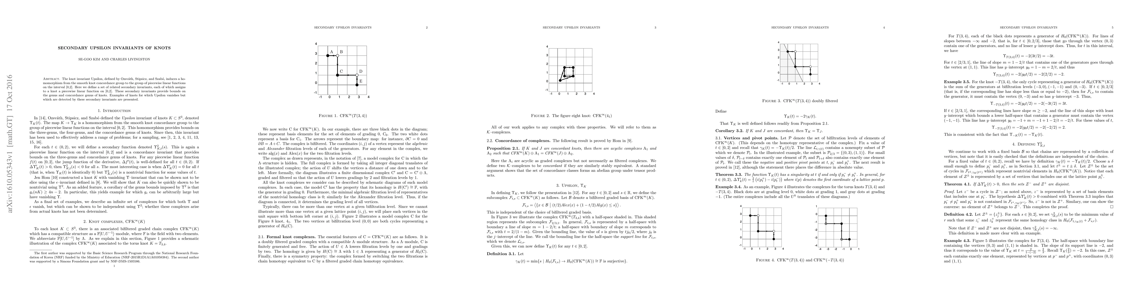 The knot invariant Upsilon, defined by Ozsvath, Stipsicz, and Szabo, induces a homomorphism from the smooth knot concordance group to the group of piecewise linear functions on the interval [0,2]. Here we define a set of related secondary invariants, each of which assigns to a knot a piecewise linear function on [0,2]. These secondary invariants provide bounds on the genus and concordance genus of knots. Examples of knots for which Upsilon vanishes but which are detected by these secondary invariants are presented.
