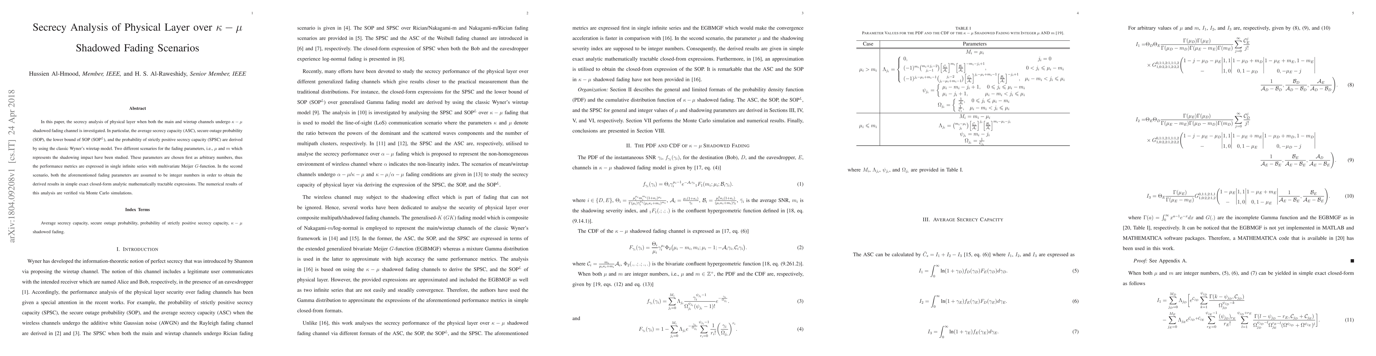 This paper investigates the secrecy analysis of physical layer communication under $\kappa-\mu$ shadowed fading, deriving average secrecy capacity, secure outage probability, and related metrics using Wyner's wiretap model. Analytical expressions for performance metrics are derived in both arbitrary and integer scenarios, validated by Monte Carlo simulations.