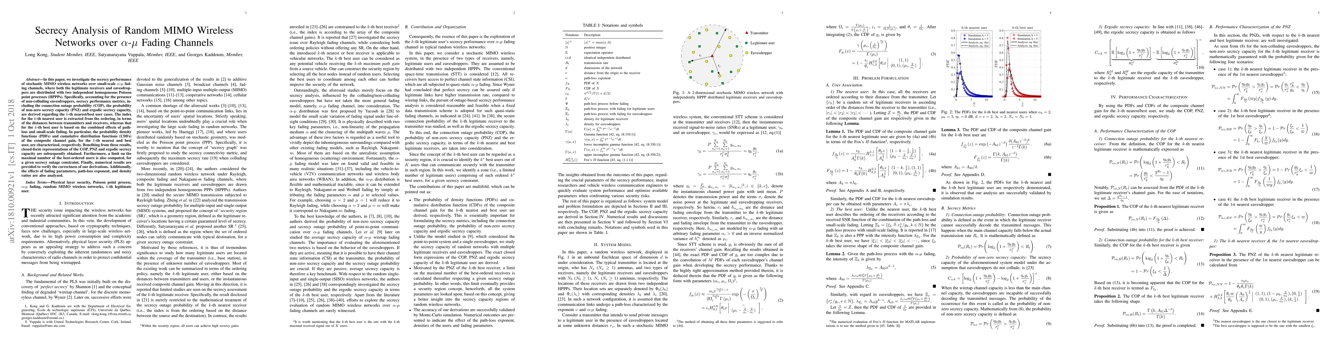 This paper analyzes the secrecy performance of random MIMO wireless networks over $\alpha$-$\mu$ fading channels, deriving metrics like connection outage probability and ergodic secrecy capacity. It characterizes the probability density and cumulative distribution functions for the $k$-th nearest and best user, providing closed-form representations and numerical verifications of the derived results.