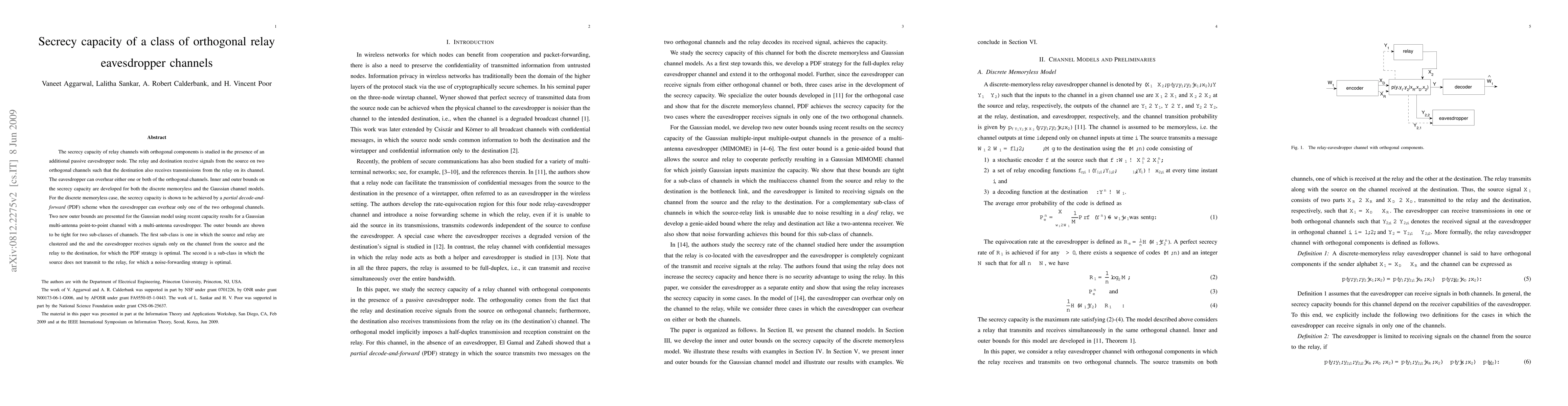 This paper investigates the secrecy capacity of orthogonal relay channels with an eavesdropper, developing inner and outer bounds for both discrete memoryless and Gaussian models. For the discrete memoryless case, a partial decode-and-forward scheme is optimal when the eavesdropper monitors only one channel. For Gaussian channels, new tight outer bounds are presented, showing that partial decode-and-forward and noise-forwarding strategies are optimal under different conditions.