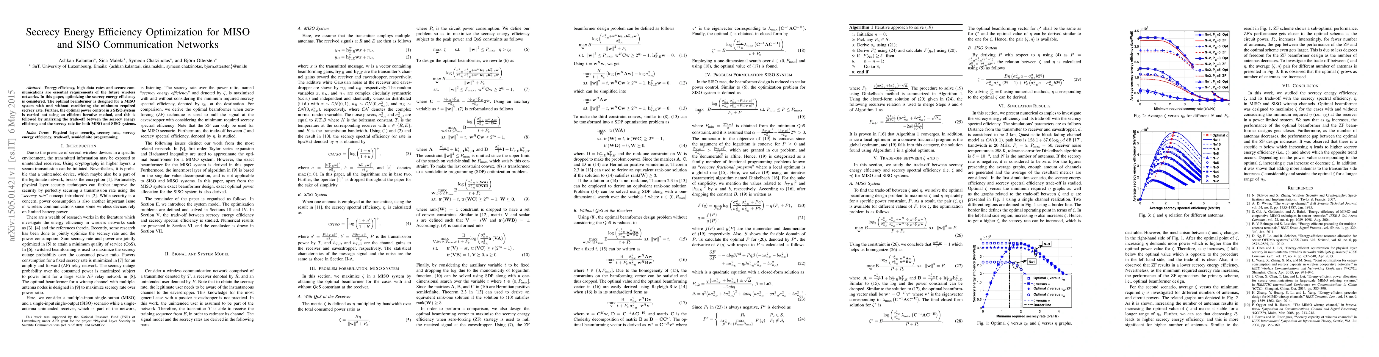This paper optimizes secrecy energy efficiency for both MISO and SISO communication networks, designing optimal beamformers for MISO systems and employing an iterative method for SISO power control, while analyzing the trade-off between secrecy energy efficiency and the required secrecy rate.