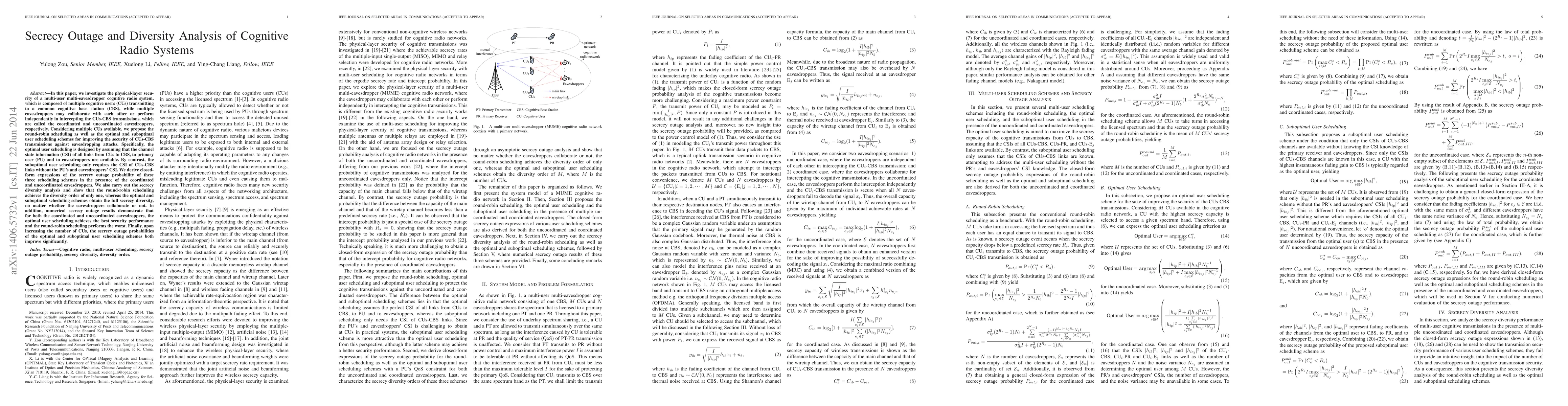 This research paper investigates the security of cognitive radio systems against eavesdropping attacks, proposing scheduling schemes to improve physical-layer security and demonstrating that optimal user scheduling achieves the best performance.