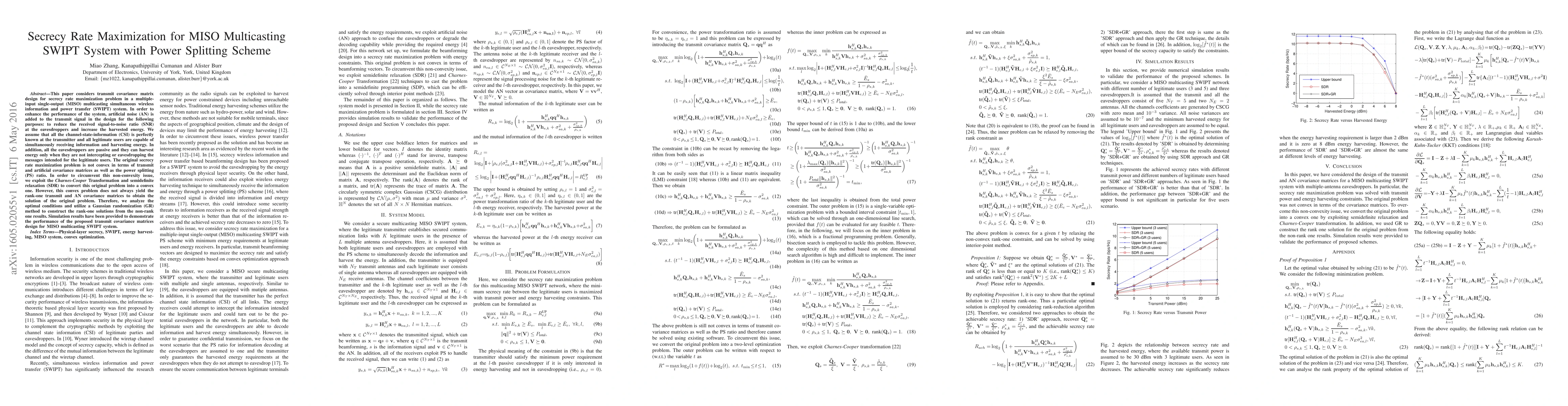 This paper proposes a method for maximizing secrecy rate in a MISO multicasting SWIPT system by designing transmit covariance matrices, incorporating artificial noise to enhance performance. It uses Charnes-Cooper Transformation and semidefinite relaxation to handle non-convexity, and employs Gaussian randomization to obtain rank-one solutions, demonstrating improved performance through simulations.