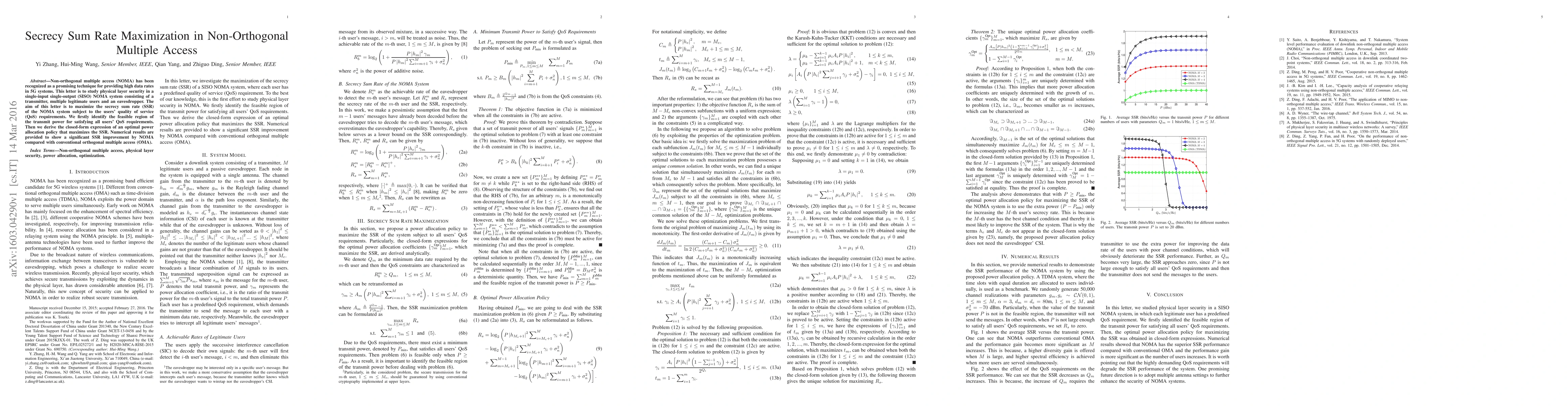 This paper investigates physical layer security in a single-input single-output NOMA system, aiming to maximize the secrecy sum rate while meeting users' QoS requirements. It derives an optimal power allocation policy and demonstrates significant improvement in SSR over conventional OMA through numerical results.