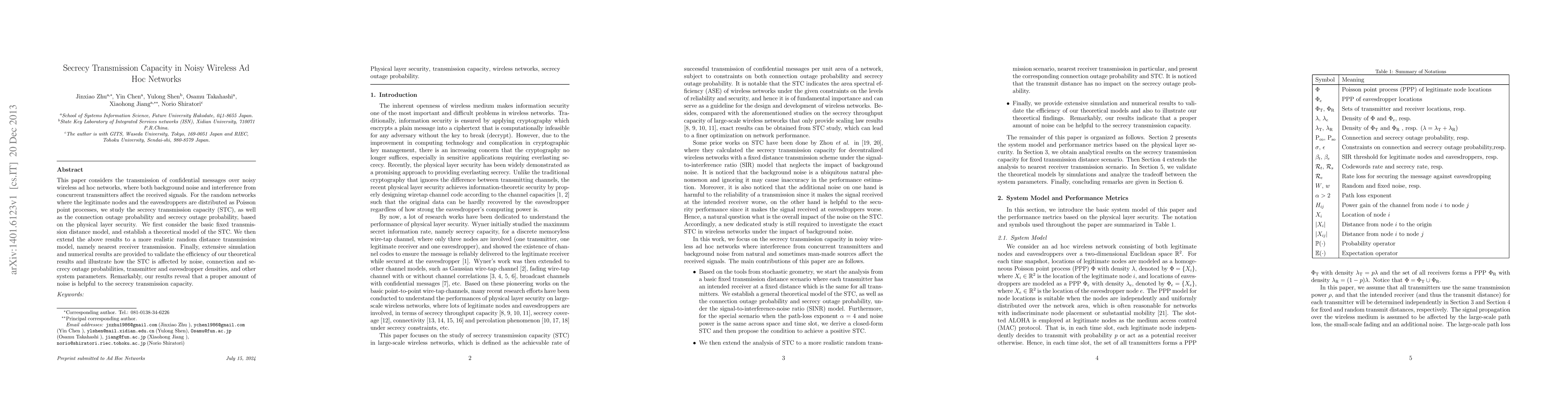 This paper investigates the secrecy transmission capacity in noisy wireless ad hoc networks, analyzing how noise and interference impact the confidentiality of messages. It establishes theoretical models for both fixed and random distance transmission scenarios and validates these models through simulations, revealing that controlled noise can enhance secrecy transmission capacity.