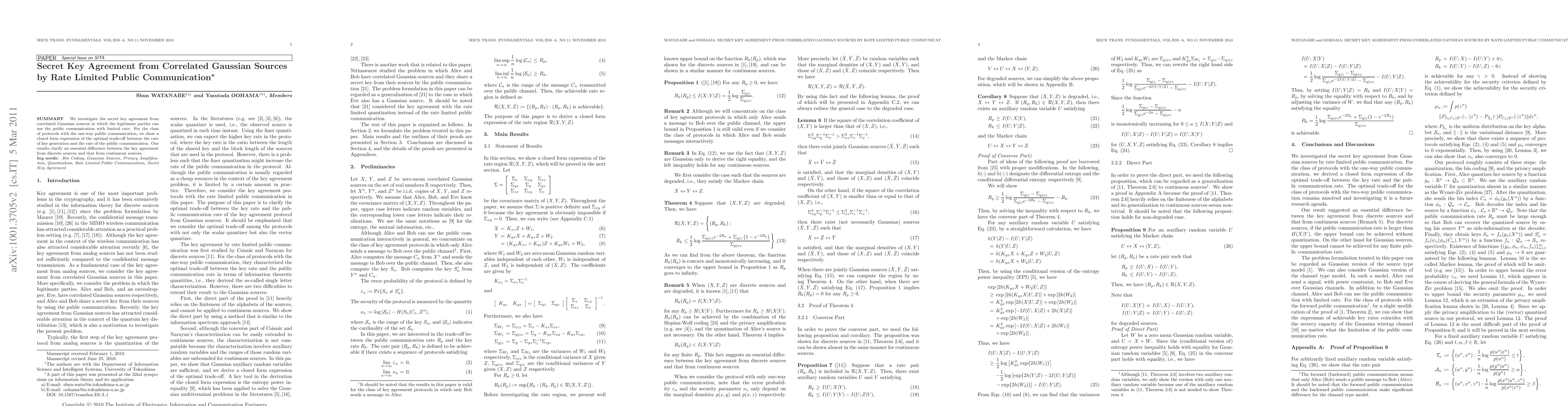 This paper explores secret key agreement from correlated Gaussian sources using limited public communication, deriving a closed-form expression for the optimal trade-off between key generation and communication rates. It highlights a key distinction in key agreement protocols between discrete and continuous sources.