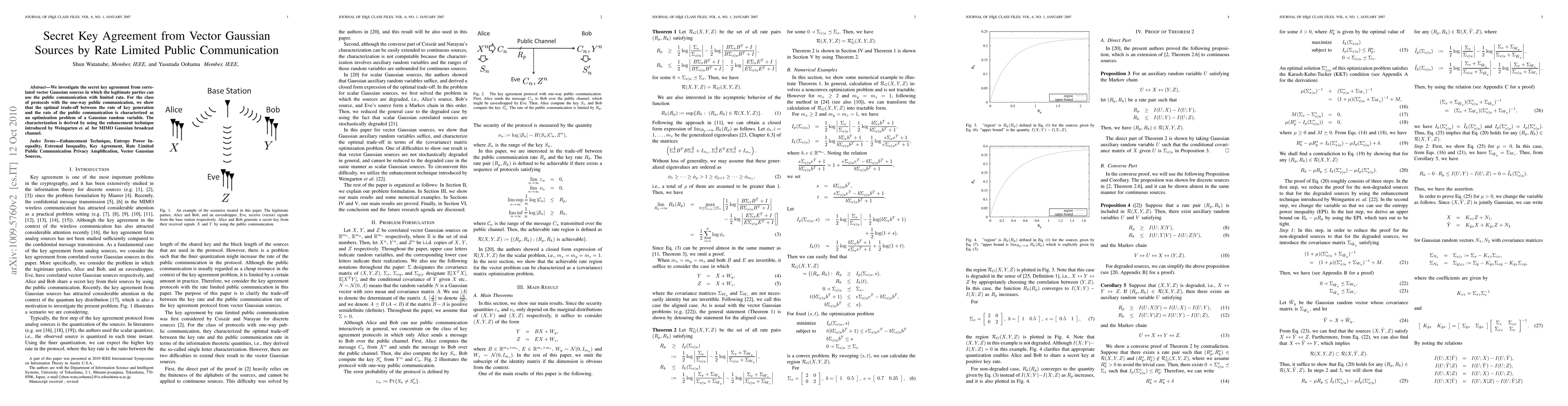The paper presents a characterization of the optimal trade-off between secret key generation rate and public communication rate for vector Gaussian sources, using an optimization problem involving a Gaussian random variable.