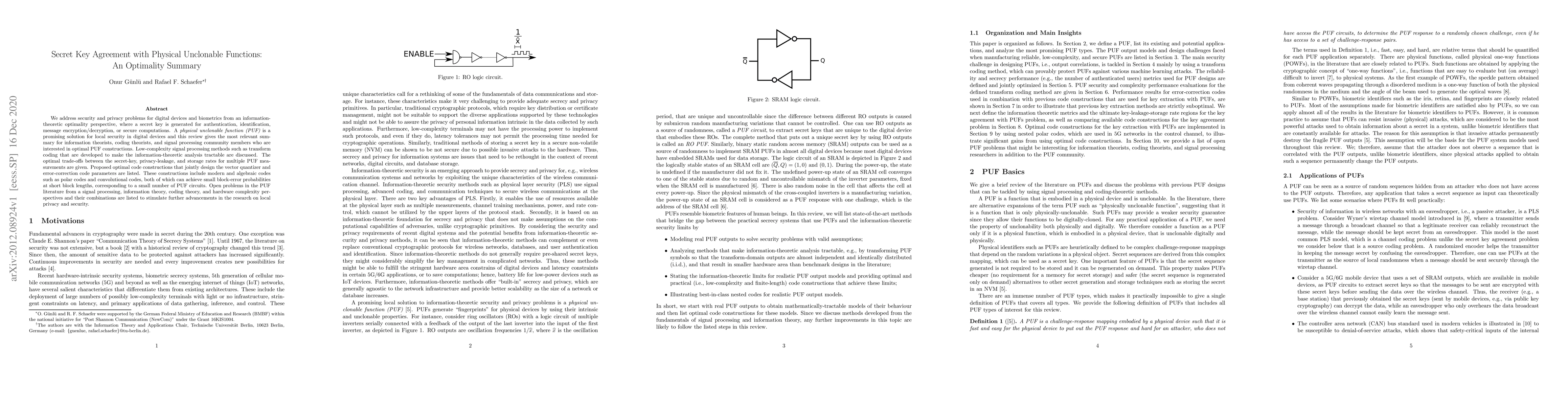 We address security and privacy problems for digital devices and biometrics from an information-theoretic optimality perspective, where a secret key is generated for authentication, identification, message encryption/decryption, or secure computations. A physical unclonable function (PUF) is a promising solution for local security in digital devices and this review gives the most relevant summary for information theorists, coding theorists, and signal processing community members who are interested in optimal PUF constructions. Low-complexity signal processing methods such as transform coding that are developed to make the information-theoretic analysis tractable are discussed. The optimal trade-offs between the secret-key, privacy-leakage, and storage rates for multiple PUF measurements are given. Proposed optimal code constructions that jointly design the vector quantizer and error-correction code parameters are listed. These constructions include modern and algebraic codes such as polar codes and convolutional codes, both of which can achieve small block-error probabilities at short block lengths, corresponding to a small number of PUF circuits. Open problems in the PUF literature from a signal processing, information theory, coding theory, and hardware complexity perspectives and their combinations are listed to stimulate further advancements in the research on local privacy and security.