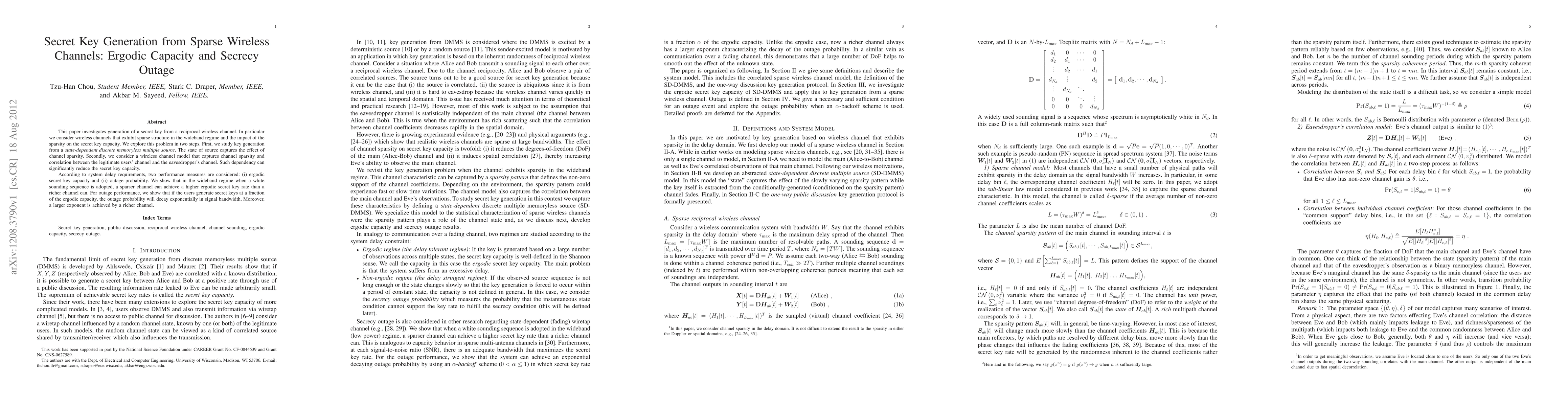 This paper explores secret key generation from sparse wireless channels, analyzing the impact of channel sparsity on secret key capacity and secrecy outage probability. It finds that sparser channels can achieve higher ergodic secret key rates, while richer channels provide better outage performance.