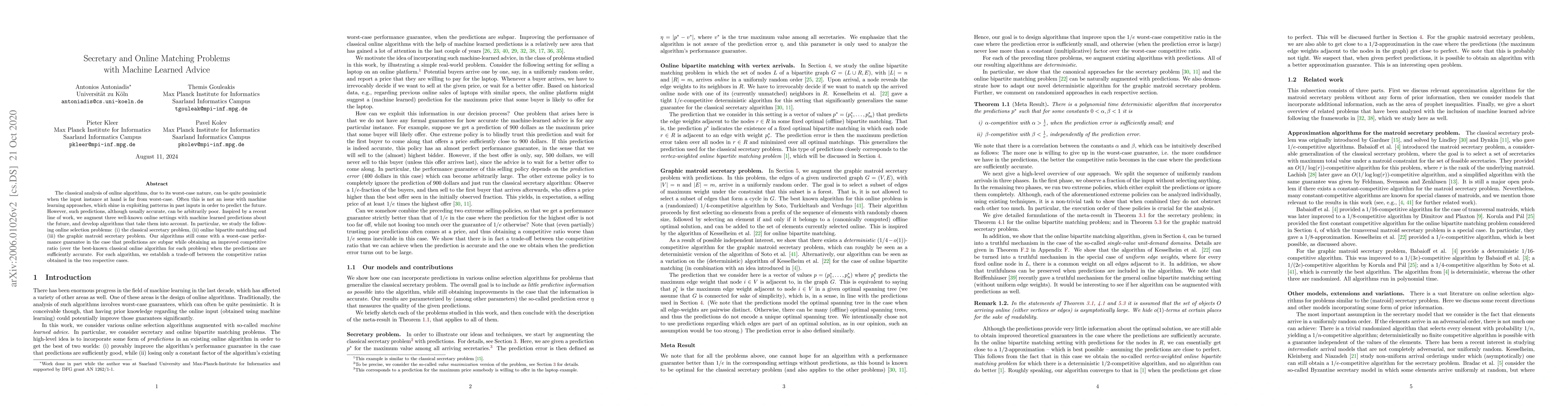 Researchers developed online algorithms that incorporate machine learning predictions to improve performance in selection problems like secretary and bipartite matching, offering a trade-off between accuracy of predictions and competitive ratios.
