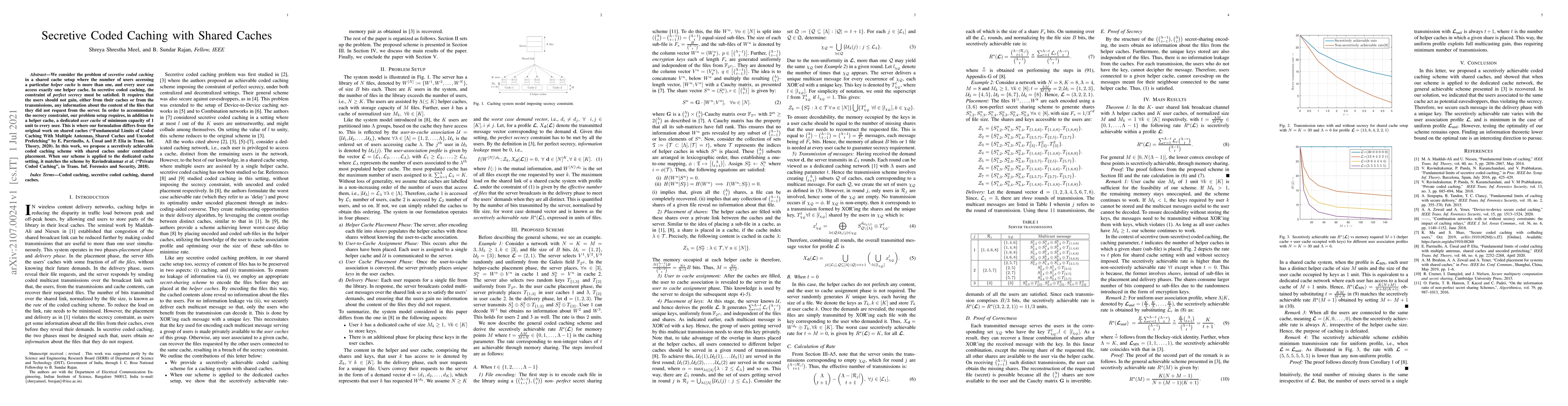 The paper introduces a novel coded caching scheme for shared caches that ensures secrecy through dedicated user caches and a centralized placement strategy.