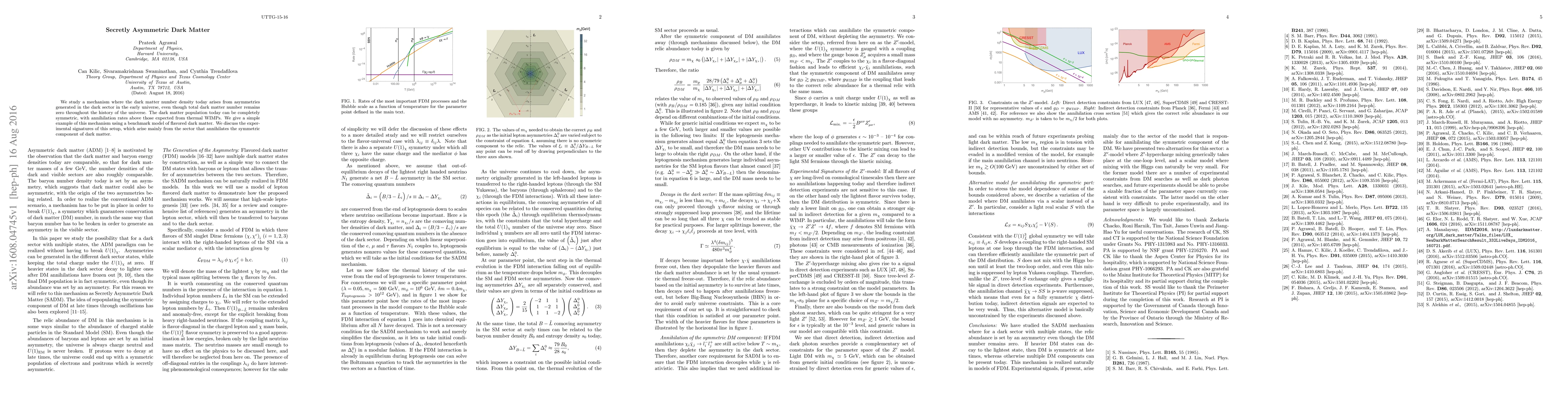 We study a mechanism where the dark matter number density today arises from asymmetries generated in the dark sector in the early universe, even though total dark matter number remains zero throughout the history of the universe. The dark matter population today can be completely symmetric, with annihilation rates above those expected from thermal WIMPs. We give a simple example of this mechanism using a benchmark model of flavored dark matter. We discuss the experimental signatures of this setup, which arise mainly from the sector that annihilates the symmetric component of dark matter.