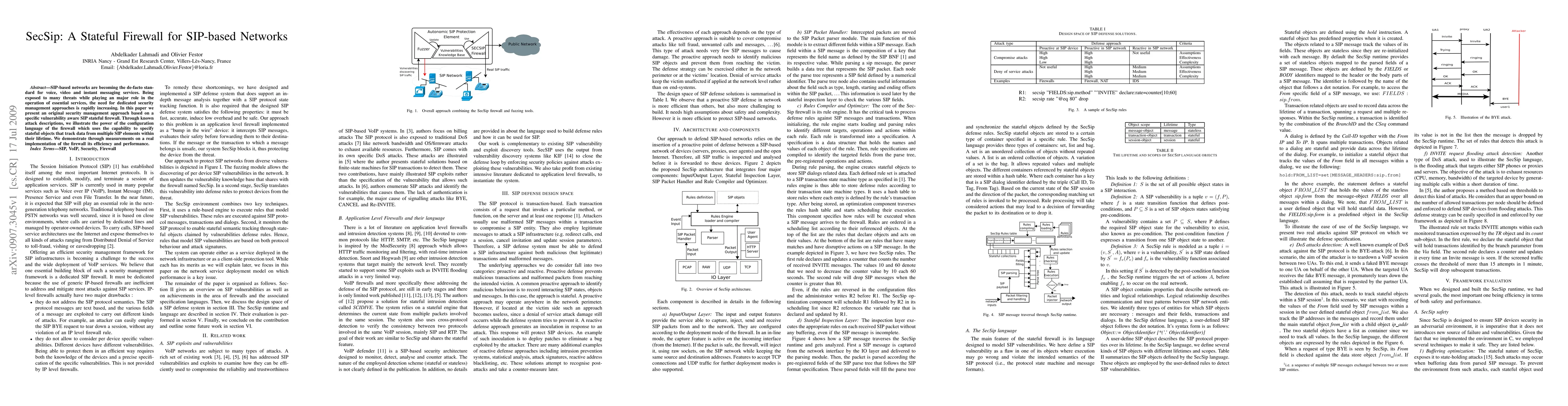This paper introduces SecSip, a stateful firewall designed to secure SIP-based networks by tracking data from multiple SIP elements to identify and mitigate threats. The firewall's configuration language is shown to effectively manage known attacks, and its efficiency and performance are validated through real-world implementation measurements.
