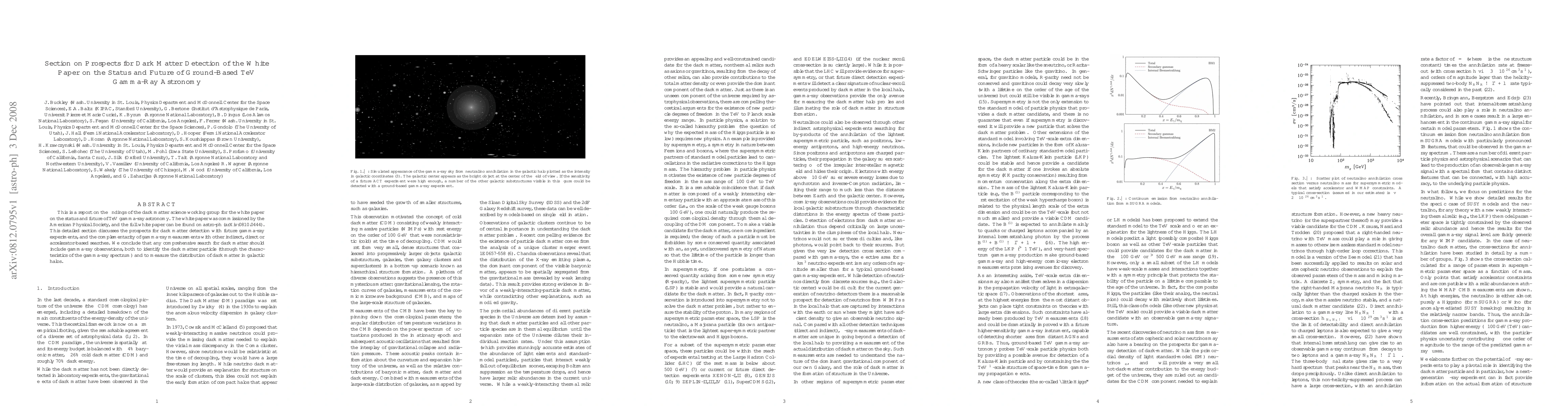 This section of the white paper on TeV gamma-ray astronomy evaluates the potential of future gamma-ray experiments to detect dark matter, emphasizing the importance of gamma-ray observations to identify dark matter particles and measure their distribution in galactic halos. It advocates for integrating gamma-ray measurements with other dark matter search methods.
