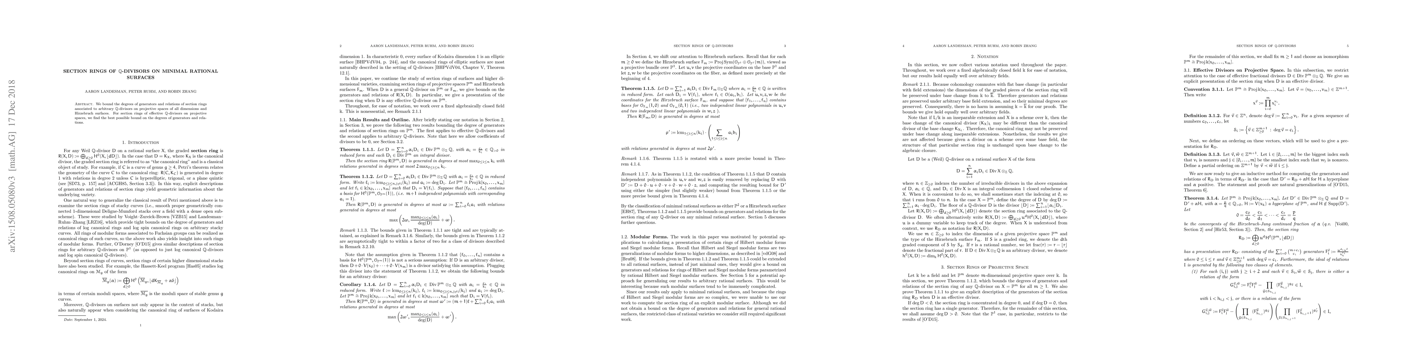 Researchers provide bounds on the degree of generation and relations of section rings for $bbb{Q}$-divisors on various surfaces, including projective spaces and Hirzebruch surfaces, with the best possible bound found for effective divisors on projective spaces.
