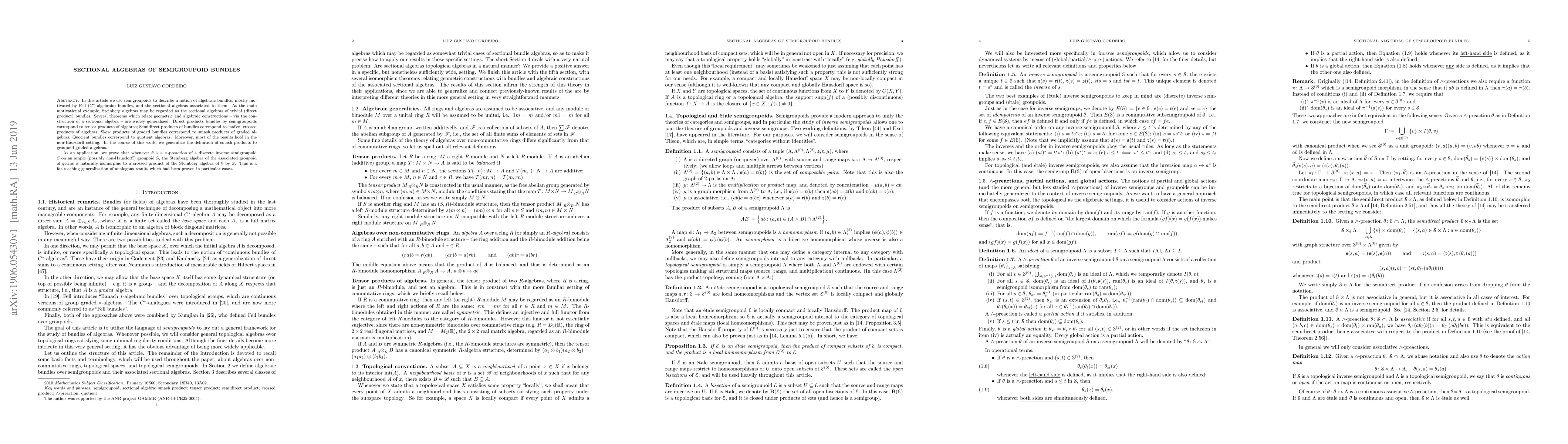In this article we use semigroupoids to describe a notion of algebraic bundles, mostly motivated by Fell ($C^*$-algebraic) bundles, and the sectional algebras associated to them. As the main motivational example, Steinberg algebras may be regarded as the sectional algebras of trivial (direct product) bundles. Several theorems which relate geometric and algebraic constructions - via the construction of a sectional algebra - are widely generalized: Direct products bundles by semigroupoids correspond to tensor products of algebras; Semidirect products of bundles correspond to "na\"ive" crossed products of algebras; Skew products of graded bundles correspond to smash products of graded algebras; Quotient bundles correspond to quotient algebras. Moreover, most of the results hold in the non-Hausdorff setting. In the course of this work, we generalize the definition of smash products to groupoid graded algebras. As an application, we prove that whenever $\theta$ is a $\land$-preaction of a discrete inverse semigroupoid $S$ on an ample (possibly non-Hausdorff) groupoid $\mathcal{G}$, the Steinberg algebra of the associated groupoid of germs is naturally isomorphic to a crossed product of the Steinberg algebra of $\mathcal{G}$ by $S$. This is a far-reaching generalization of analogous results which had been proven in particular cases.