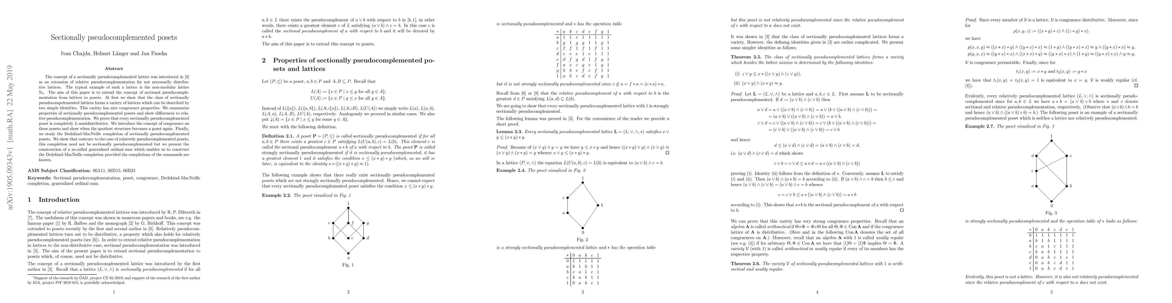 This paper extends the concept of sectional pseudocomplementation from lattices to posets, proving that sectionally pseudocomplemented posets are completely L-semidistributive. It introduces congruences and discusses when quotient structures remain posets, and examines the Dedekind-MacNeille completion, showing it need not retain sectional pseudocomplementation but provides a generalized ordinal sum for its construction.