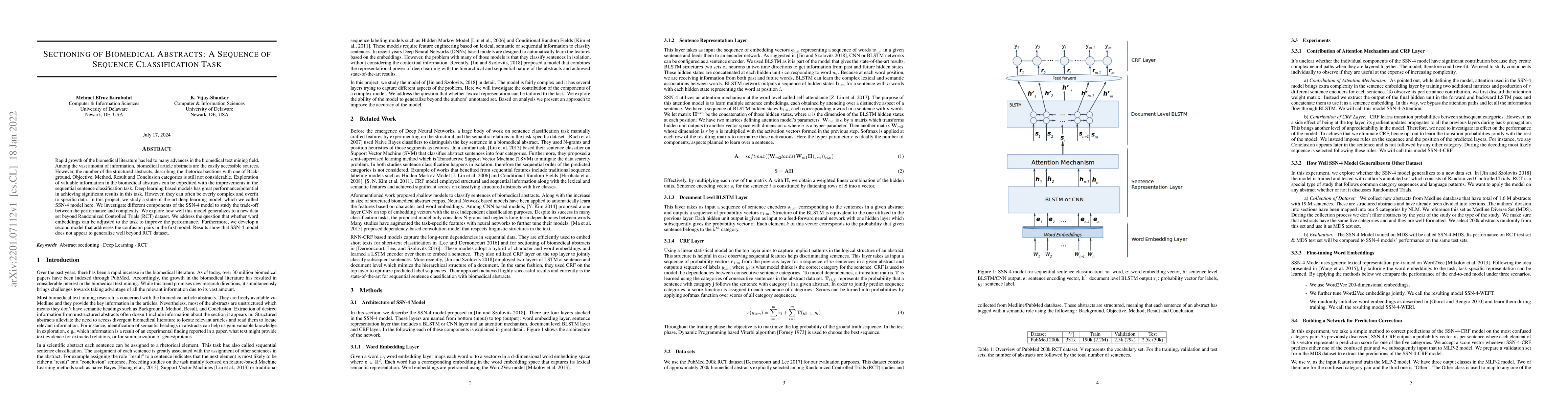 This paper explores a deep learning model, SSN-4, for classifying biomedical abstract sections into Background, Objective, Method, Result, and Conclusion. The study investigates the model's performance, complexity, and generalization beyond Randomized Controlled Trials data, finding limited success and developing a second model to address confusion pairs.