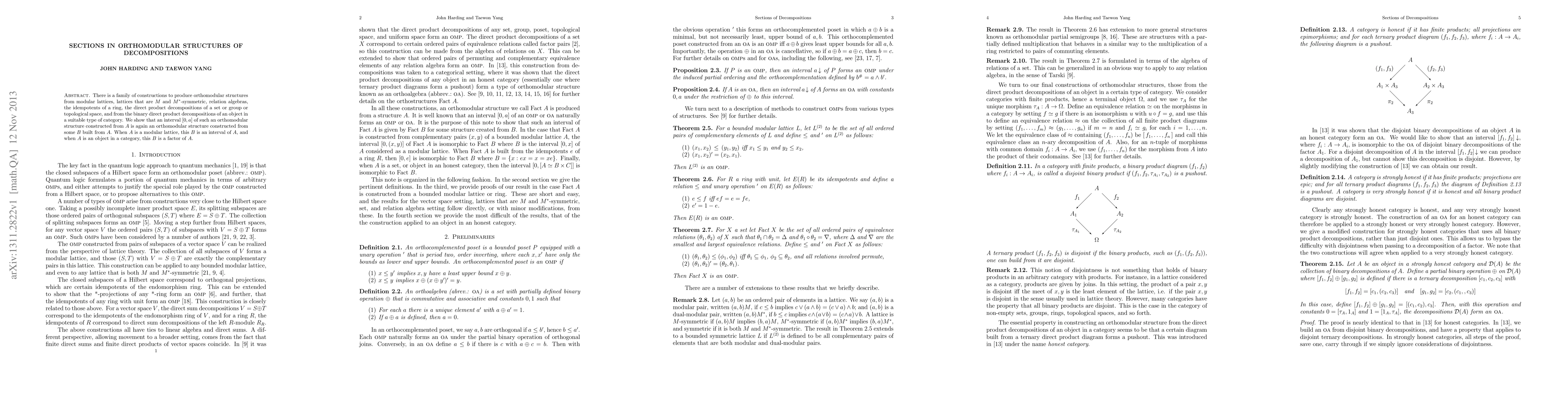 This paper explores various constructions to generate orthomodular structures from different mathematical objects, including modular lattices and category objects. It demonstrates that an interval [0, a] within such a structure can itself form an orthomodular structure derived from a related object B, which is either an interval or a factor depending on the original object's nature.