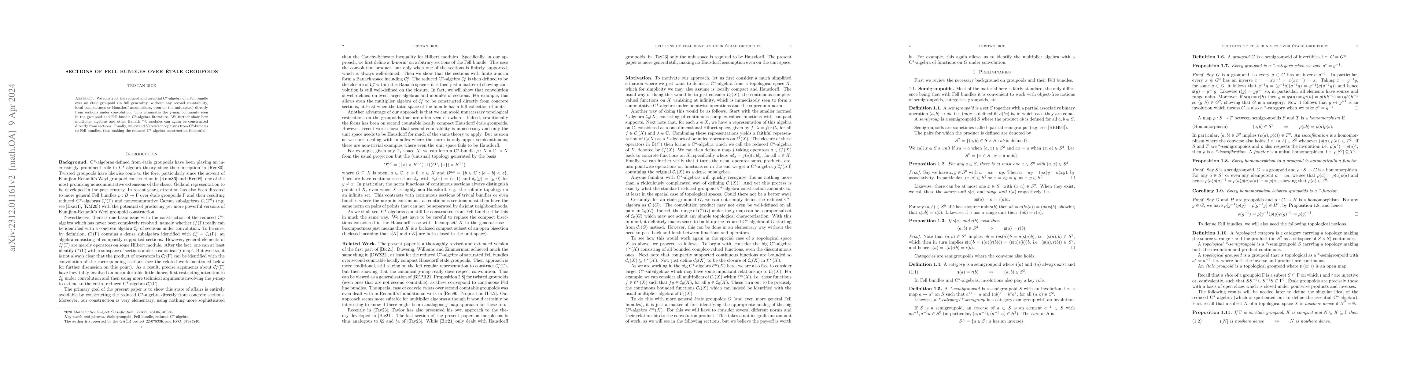 We construct the reduced and essential C*-algebra of a Fell bundle over an \'etale groupoid (in full generality, without any second countability, local compactness or Hausdorff assumptions, even on the unit space) directly from sections under convolution. This eliminates the j-map commonly seen in the groupoid and Fell bundle C*-algebra literature. We further show how multiplier algebras and other Banach *-bimodules can again be constructed directly from sections. Finally, we extend Varela's morphisms from C*-bundles to Fell bundles, thus making the reduced C*-algebra construction functorial.