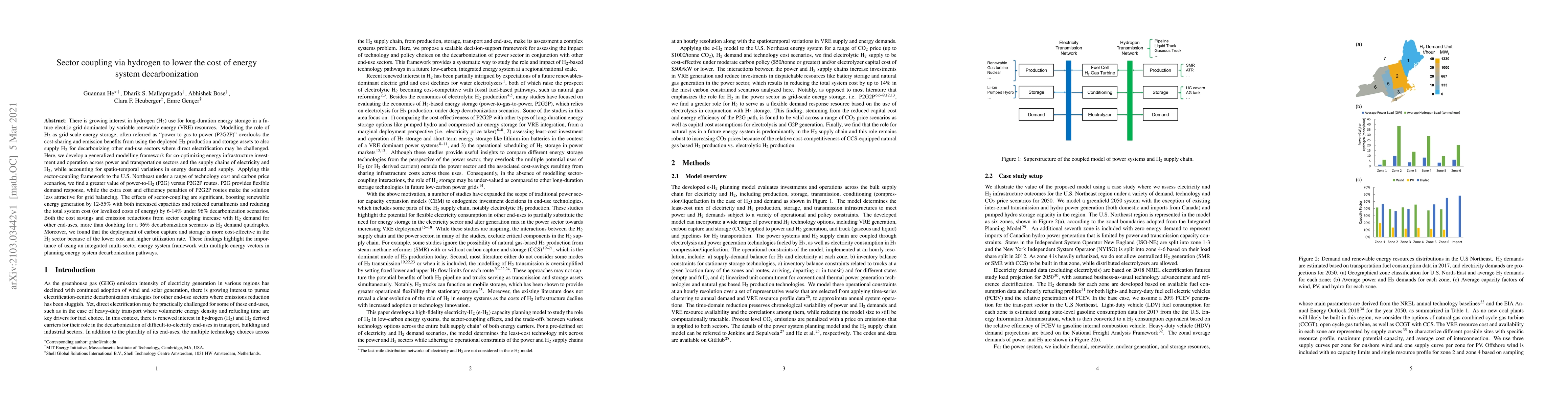 There is growing interest in hydrogen (H$_2$) use for long-duration energy storage in a future electric grid dominated by variable renewable energy (VRE) resources. Modelling the role of H$_2$ as grid-scale energy storage, often referred as "power-to-gas-to-power (P2G2P)" overlooks the cost-sharing and emission benefits from using the deployed H$_2$ production and storage assets to also supply H$_2$ for decarbonizing other end-use sectors where direct electrification may be challenged. Here, we develop a generalized modelling framework for co-optimizing energy infrastructure investment and operation across power and transportation sectors and the supply chains of electricity and H$_2$, while accounting for spatio-temporal variations in energy demand and supply. Applying this sector-coupling framework to the U.S. Northeast under a range of technology cost and carbon price scenarios, we find a greater value of power-to-H$_2$ (P2G) versus P2G2P routes. P2G provides flexible demand response, while the extra cost and efficiency penalties of P2G2P routes make the solution less attractive for grid balancing. The effects of sector-coupling are significant, boosting VRE generation by 12-55% with both increased capacities and reduced curtailments and reducing the total system cost (or levelized costs of energy) by 6-14% under 96% decarbonization scenarios. Both the cost savings and emission reductions from sector coupling increase with H$_2$ demand for other end-uses, more than doubling for a 96% decarbonization scenario as H$_2$ demand quadraples. Moreover, we found that the deployment of carbon capture and storage is more cost-effective in the H$_2$ sector because of the lower cost and higher utilization rate. These findings highlight the importance of using an integrated multi-sector energy system framework with multiple energy vectors in planning energy system decarbonization pathways.
