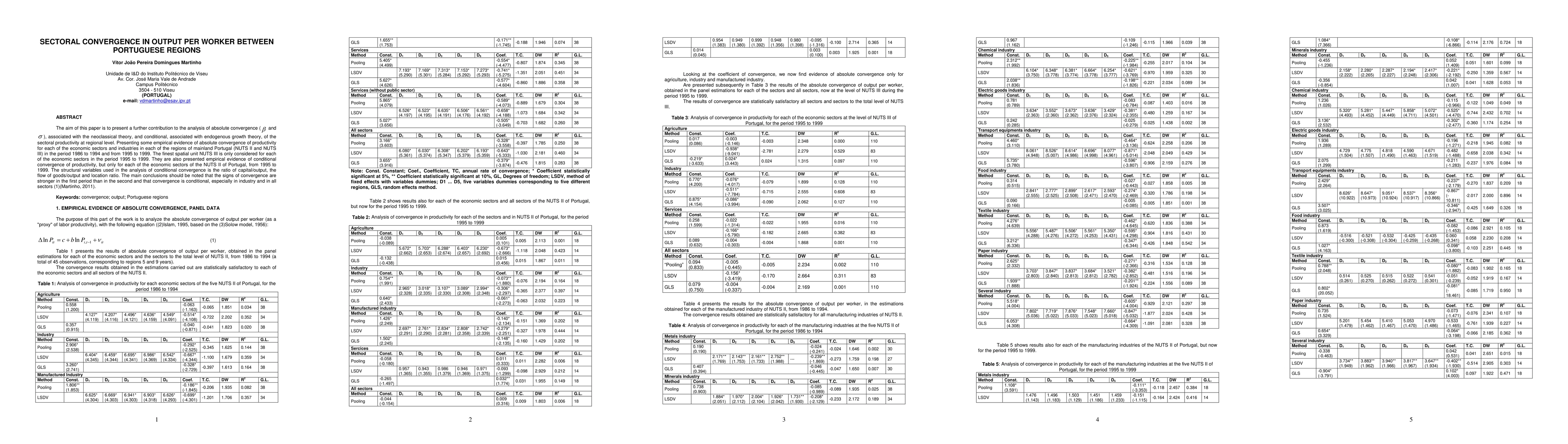 This paper examines productivity convergence across Portuguese regions from 1986 to 1999, finding stronger signs of convergence in the first period and conditional convergence that varies by sector and region.