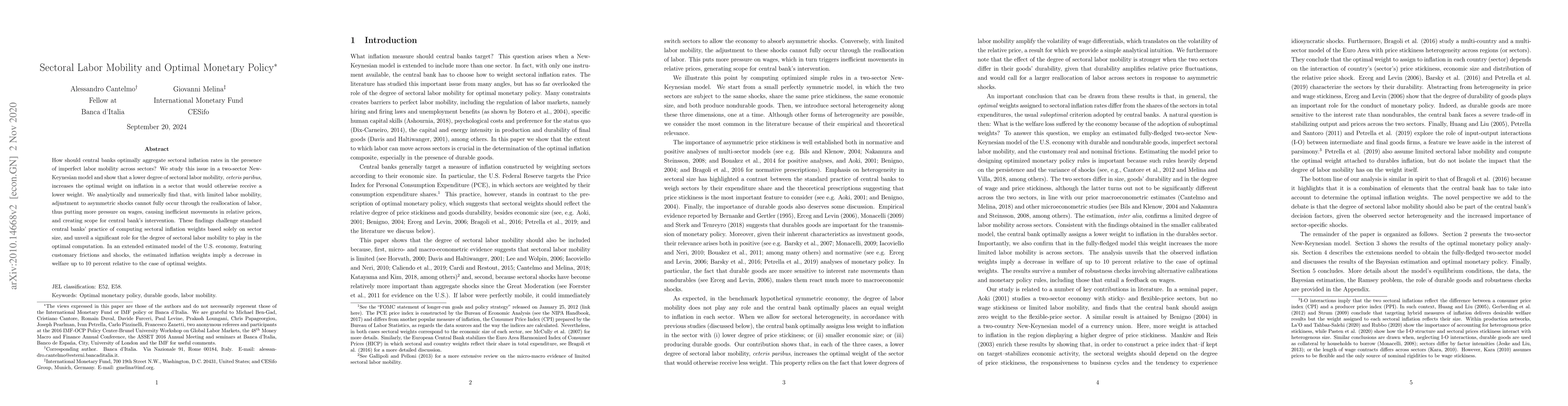 This paper examines how central banks should aggregate sectoral inflation rates when labor mobility is imperfect. It finds that limited labor mobility increases the optimal weight on inflation in sectors that would otherwise receive less attention, challenging the standard practice of basing weights solely on sector size. The study concludes that central banks should consider labor mobility when determining optimal inflation weights to enhance welfare.
