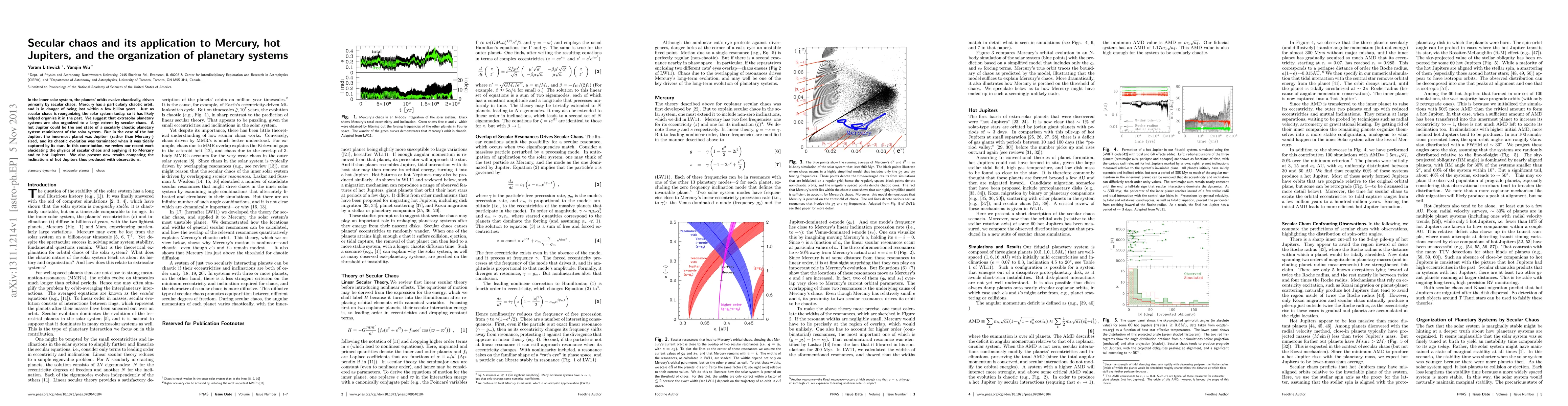 This paper explores secular chaos in planetary orbits, focusing on Mercury's chaotic evolution and its implications for the solar system's organization. It also applies these principles to hot Jupiters, suggesting they may result from similar chaotic processes, and compares theoretical models with observational data.