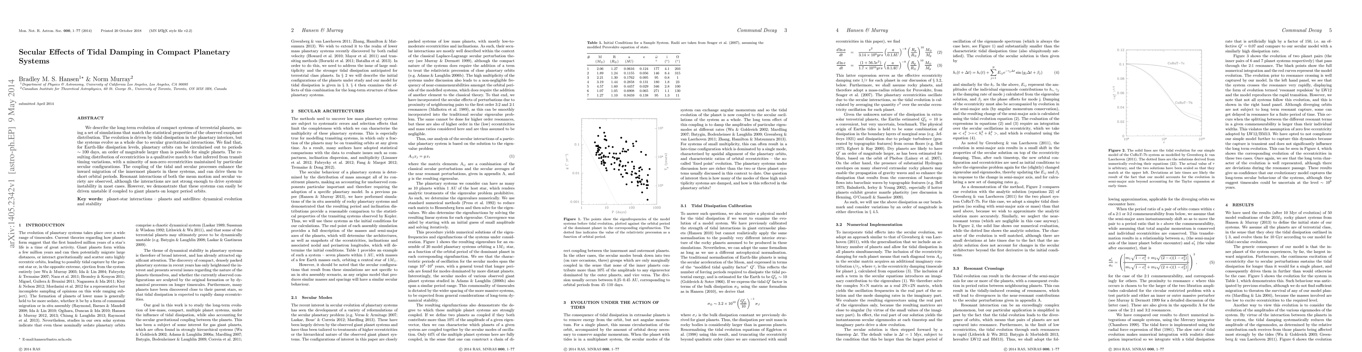 This paper investigates the long-term evolution of compact terrestrial planetary systems driven by tidal dissipation and secular gravitational interactions, finding that these systems can circularize orbits over periods up to 100 days, significantly more than single planets, and that resonant interactions can lead to systemic instability when coupled with giant planets.