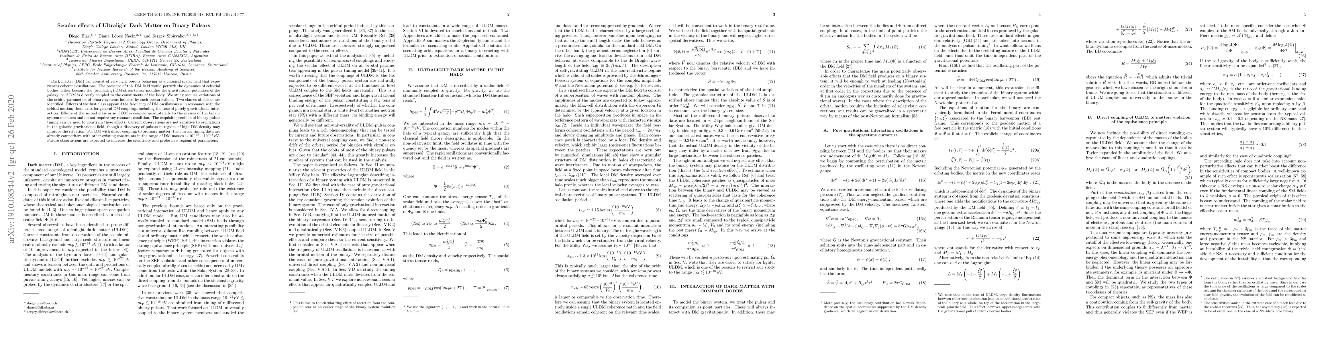 Dark matter (DM) can consist of very light bosons behaving as a classical scalar field that experiences coherent oscillations. The presence of this DM field would perturb the dynamics of celestial bodies, either because the (oscillating) DM stress tensor modifies the gravitational potentials of the galaxy, or if DM is directly coupled to the constituents of the body. We study secular variations of the orbital parameters of binary systems induced by such perturbations. Two classes of effects are identified. Effects of the first class appear if the frequency of DM oscillations is in resonance with the orbital motion; these exist for general DM couplings including the case of purely gravitational interaction. Effects of the second class arise if DM is coupled quadratically to the masses of the binary system members and do not require any resonant condition. The exquisite precision of binary pulsar timing can be used to constrain these effects. Current observations are not sensitive to oscillations in the galactic gravitational field, though a discovery of pulsars in regions of high DM density may improve the situation. For DM with direct coupling to ordinary matter, the current timing data are already competitive with other existing constraints in the range of DM masses $\sim 10^{-22}-10^{-18}\,{\rm eV}$. Future observations are expected to increase the sensitivity and probe new regions of parameters.
