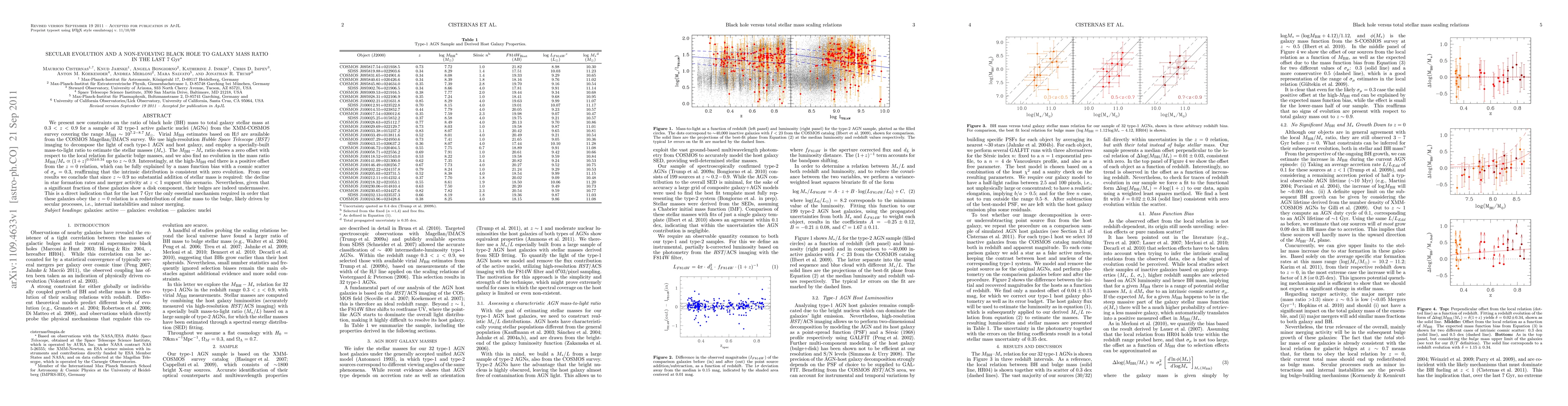 This paper investigates the black hole to galaxy stellar mass ratio over the last 7 billion years, finding no significant evolution in the ratio up to z~0.9. The study concludes that secular processes, such as internal instabilities and minor mergers, have been the primary drivers of stellar mass redistribution to the galaxy bulges, maintaining the observed mass ratio.