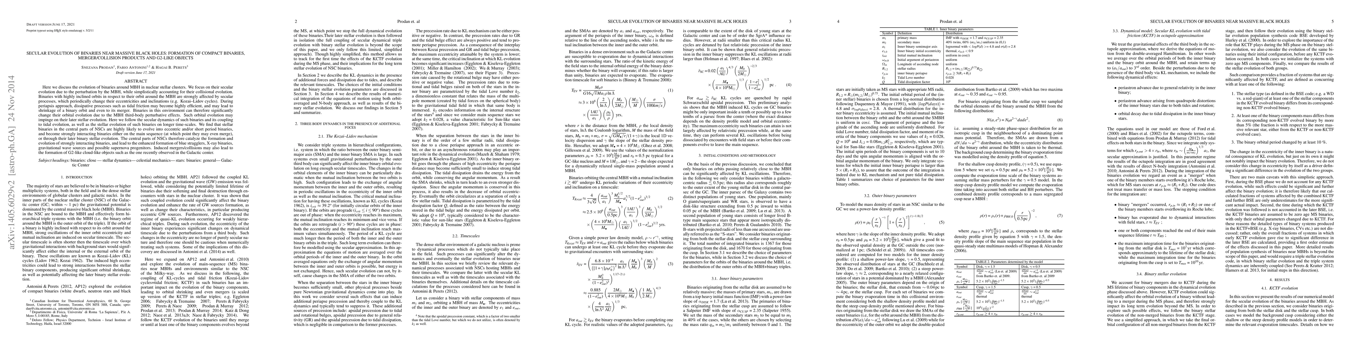 This paper investigates the secular evolution of binaries near massive black holes (MBH) in nuclear stellar clusters, focusing on how MBH perturbations affect their orbits and lead to the formation of compact binaries, merger/collision products, and G2-like objects. The study finds that binaries are likely to evolve into eccentric, short-period, and strongly interacting systems, potentially resulting in mergers, blue stragglers, X-ray binaries, and gravitational wave sources.