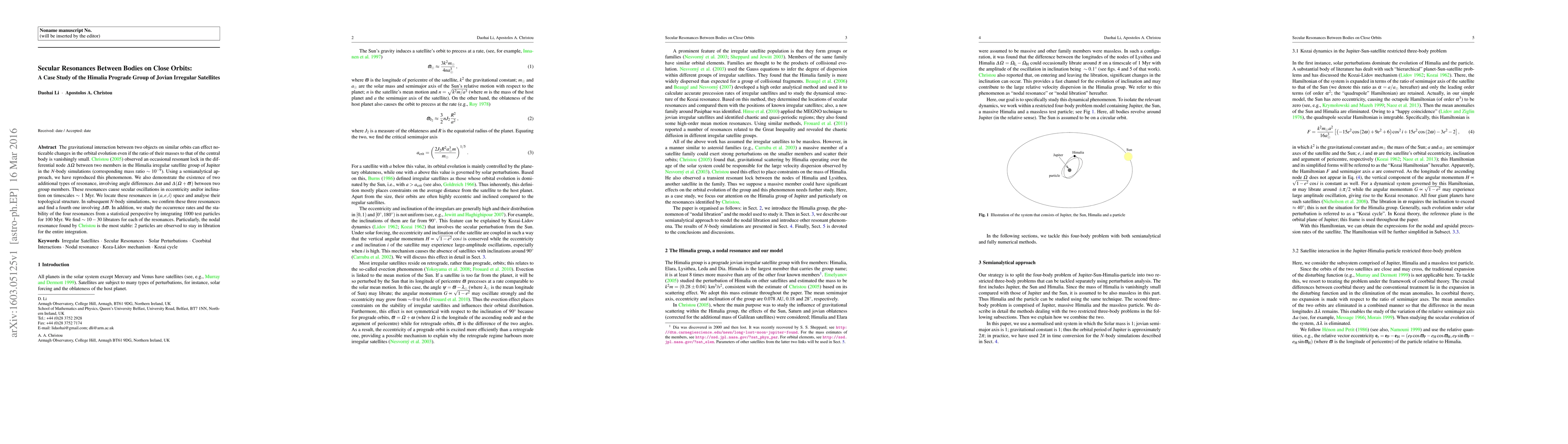 The gravitational interaction between two objects on similar orbits can effect noticeable changes in the orbital evolution even if the ratio of their masses to that of the central body is vanishingly small. Christou (2005) observed an occasional resonant lock in the differential node $\Delta \Omega$ between two members in the Himalia irregular satellite group of Jupiter in the $N$-body simulations (corresponding mass ratio $\sim 10^{-9}$). Using a semianalytical approach, we have reproduced this phenomenon. We also demonstrate the existence of two additional types of resonance, involving angle differences $\Delta\omega$ and $\Delta (\Omega+\varpi)$ between two group members. These resonances cause secular oscillations in eccentricity and/or inclination on timescales $\sim$ 1 Myr. We locate these resonances in $(a,e,i)$ space and analyse their topological structure. In subsequent $N$-body simulations, we confirm these three resonances and find a fourth one involving $\Delta \varpi$. In addition, we study the occurrence rates and the stability of the four resonances from a statistical perspective by integrating 1000 test particles for 100 Myr. We find $\sim 10-30$ librators for each of the resonances. Particularly, the nodal resonance found by Christou is the most stable: 2 particles are observed to stay in libration for the entire integration.