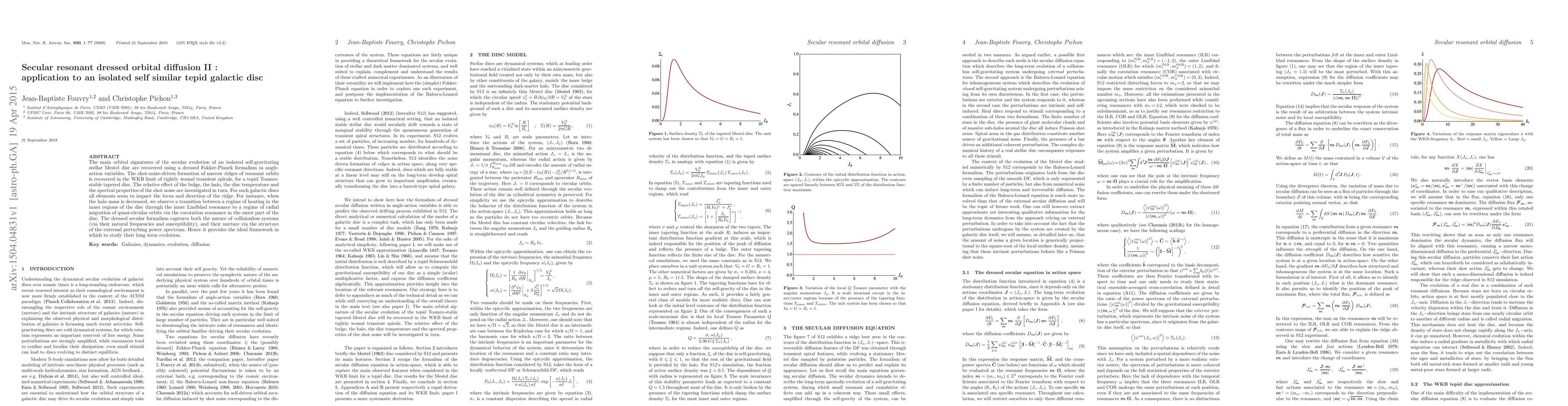 The paper presents a detailed dressed Fokker-Planck formalism in angle-action variables, applicable to the secular evolution of self-gravitating collisionless systems, and demonstrates its utility in recovering main orbital signatures of disc evolution.