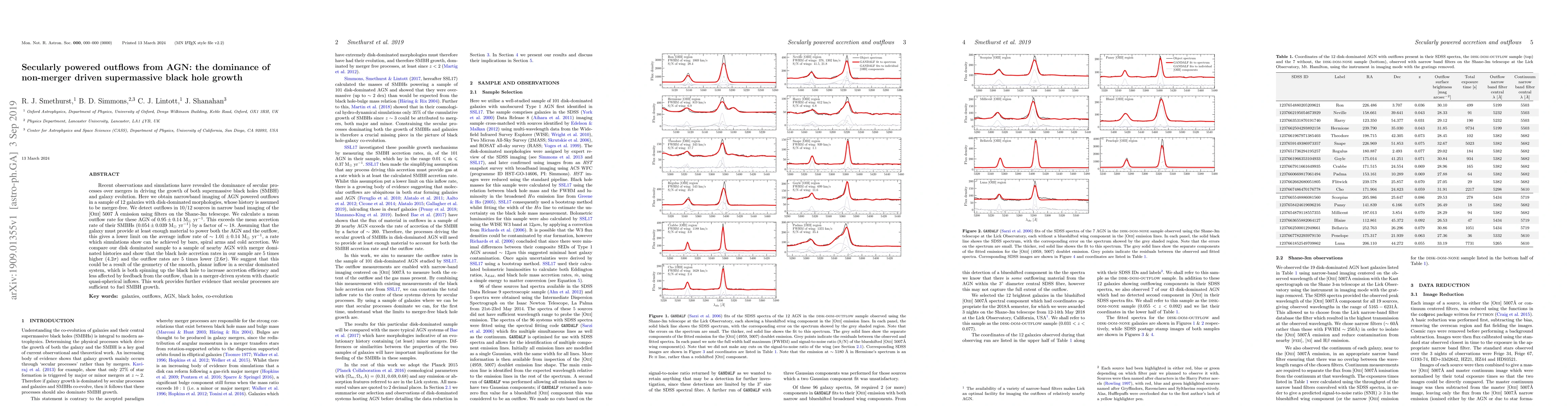 Recent observations and simulations have revealed the dominance of secular processes over mergers in driving the growth of both supermassive black holes (SMBH) and galaxy evolution. Here we obtain narrowband imaging of AGN powered outflows in a sample of $12$ galaxies with disk-dominated morphologies, whose history is assumed to be merger-free. We detect outflows in $10/12$ sources in narrow band imaging of the [OIII] $5007 \unicode{x212B}$ emission using filters on the Shane-3m telescope. We calculate a mean outflow rate for these AGN of $0.95\pm0.14~\rm{M}_{\odot}~\rm{yr}^{-1}$. This exceeds the mean accretion rate of their SMBHs $0.054\pm0.039~\rm{M}_{\odot}~\rm{yr}^{-1}$) by a factor of $\sim18$. Assuming that the galaxy must provide at least enough material to power both the AGN and the outflow, this gives a lower limit on the average inflow rate of $\sim1.01\pm0.14~\rm{M}_{\odot}~\rm{yr}^{-1}$, a rate which simulations show can be achieved by bars, spiral arms and cold accretion. We compare our disk dominated sample to a sample of nearby AGN with merger dominated histories and show that the black hole accretion rates in our sample are 5 times higher ($4.2\sigma$) and the outflow rates are 5 times lower ($2.6\sigma$}. We suggest that this could be a result of the geometry of the smooth, planar inflow in a secular dominated system, which is both spinning up the black hole to increase accretion efficiency and less affected by feedback from the outflow, than in a merger-driven system with chaotic quasi-spherical inflows. This work provides further evidence that secular processes are sufficient to fuel SMBH growth.