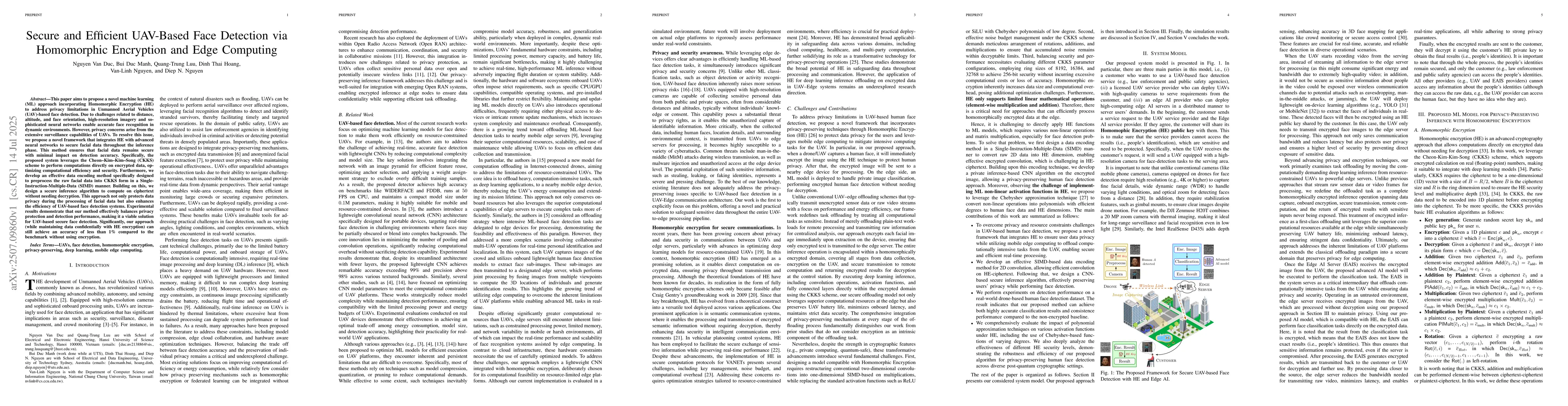 This research highlights the potential of HE-based methods to enhance privacy and effectiveness in UAV-based surveillance systems, paving the way for future developments in secure aerial face detection technologies.