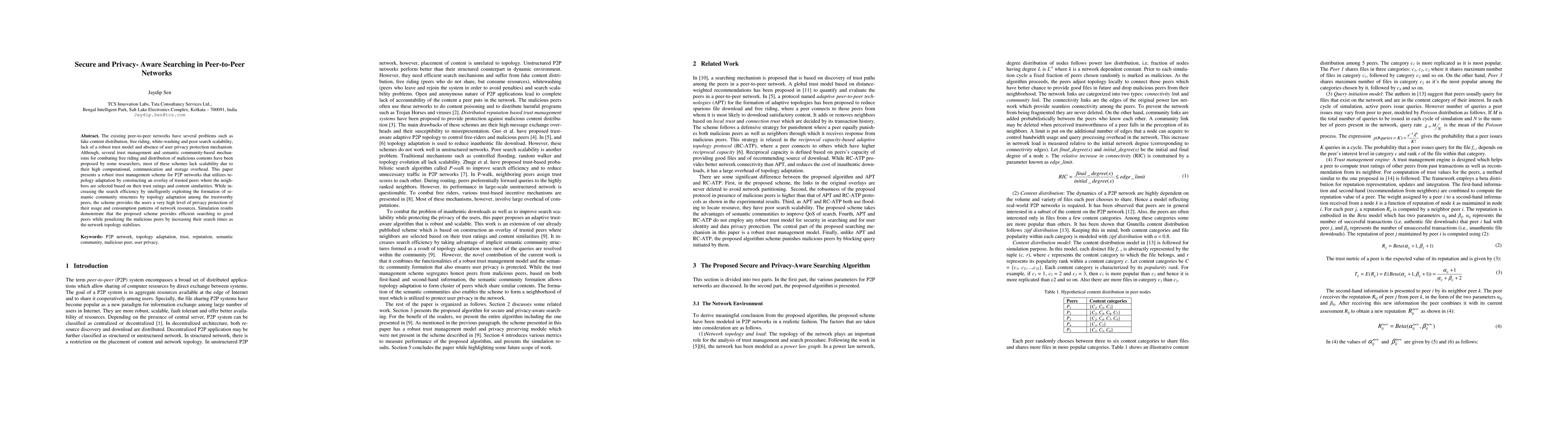 This paper proposes a robust trust management scheme for peer-to-peer networks that enhances search efficiency and privacy protection through topology adaptation and trusted peer overlays, while penalizing malicious behavior by increasing their search times. Simulation results show improved search performance for trustworthy peers.