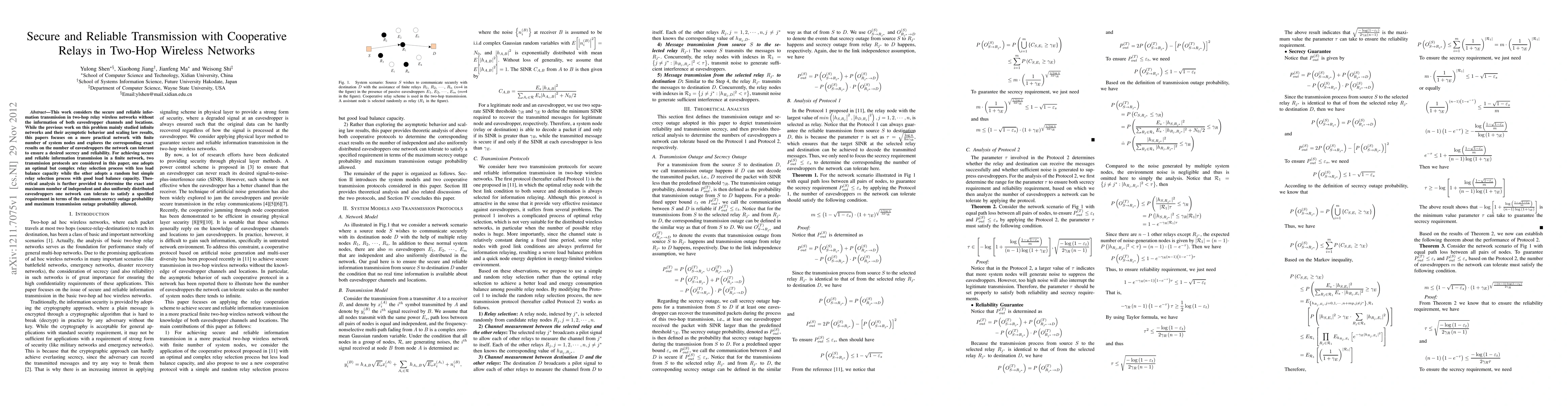 This paper investigates secure and reliable transmission in two-hop relay wireless networks, focusing on finite networks and their tolerance to eavesdroppers. It compares two relay selection protocols: one optimal but complex, and another random but simple, to determine the exact number of eavesdroppers the network can tolerate while maintaining specified secrecy and reliability.