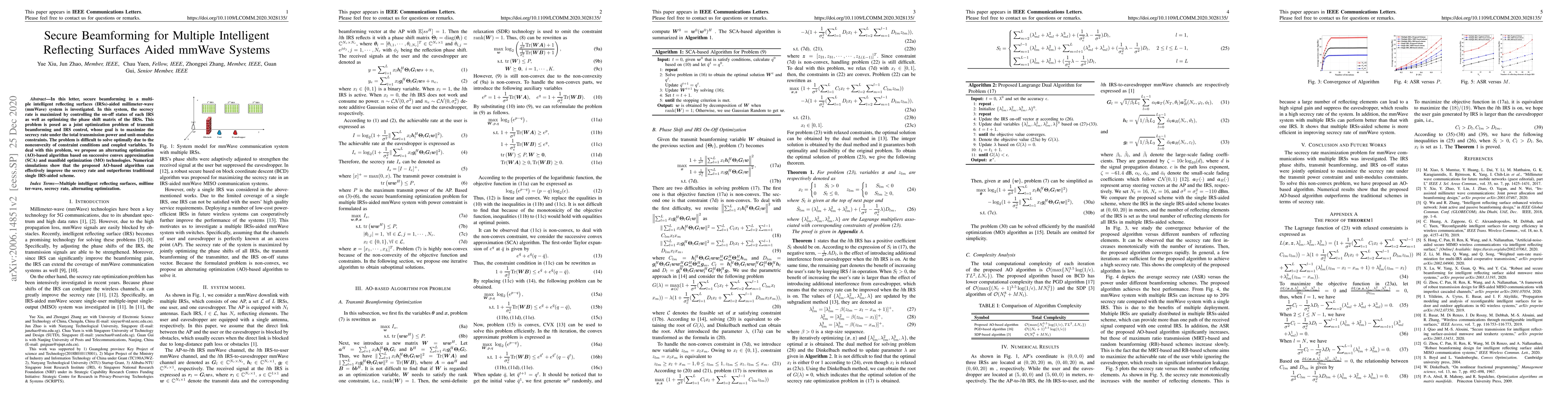 In this letter, secure beamforming in a multiple intelligent reflecting surfaces (IRSs)-aided millimeter-wave (mmWave) system is investigated. In this system, the secrecy rate is maximized by controlling the on-off status of each IRS as well as optimizing the phase shift matrix of the IRSs. This problem is posed as a joint optimization problem of transmit beamforming and IRS control, whose goal is to maximize the secrecy rate under the total transmission power and unit-modulus constraints. The problem is difficult to solve optimally due to the nonconvexity of constraint conditions and coupled variables. To deal with this problem, we propose an alternating optimization (AO)-based algorithm based on successive convex approximation (SCA) and manifold optimization (MO) technologies. Numerical simulations show that the proposed AO-based algorithm can effectively improve the secrecy rate and outperforms the traditional single IRS-aided scheme.