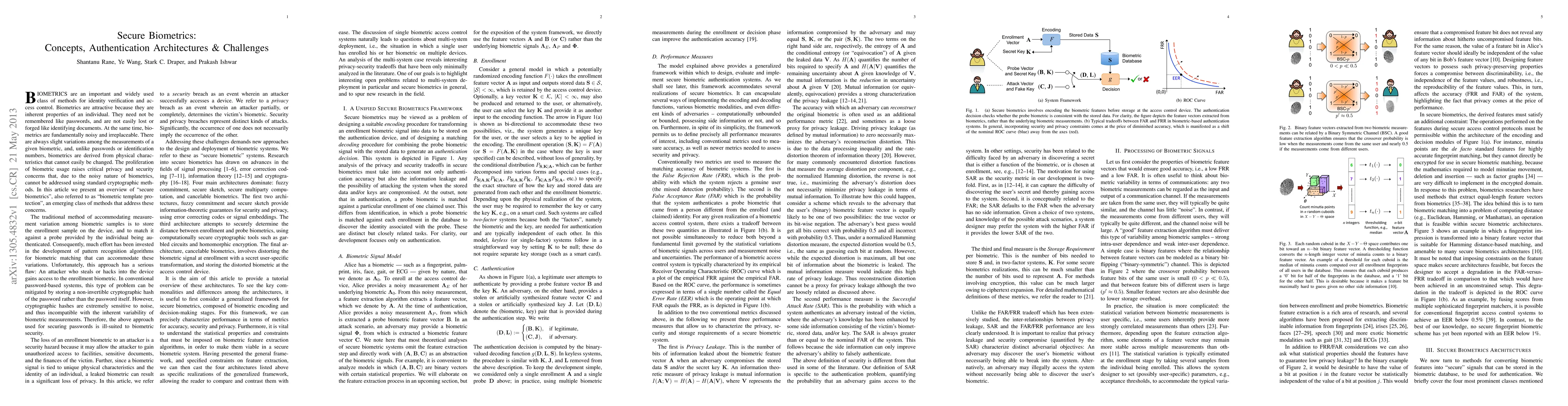 This paper explores biometrics as a means for identity verification, highlighting their advantages over traditional methods but also their inherent challenges due to variability and irreversibility. It introduces "secure biometrics" as a solution to privacy and security concerns, focusing on biometric template protection techniques.