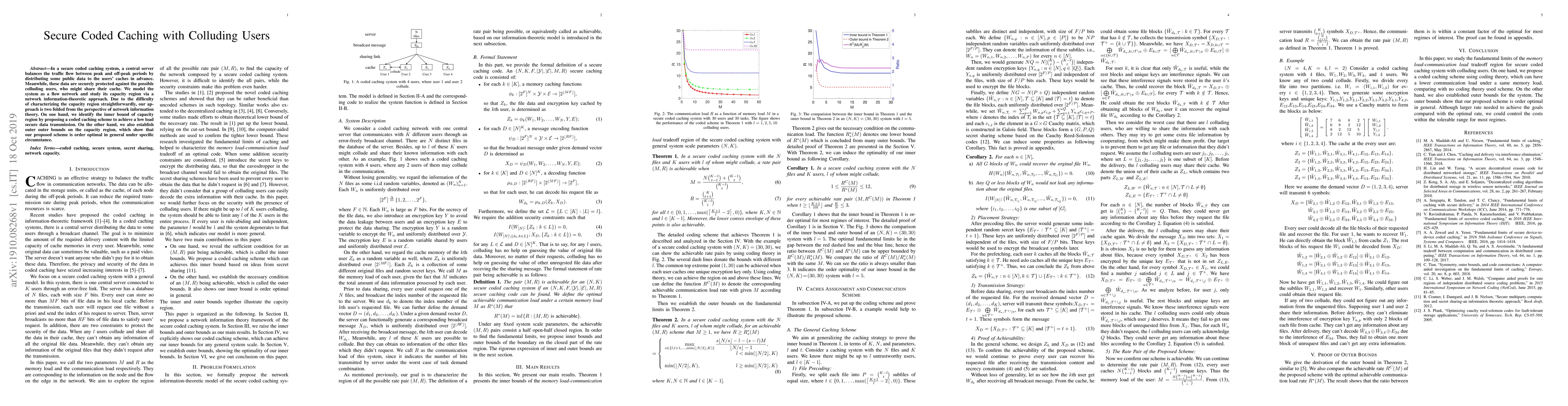 This paper explores secure coded caching with colluding users, proposing a scheme to distribute protected data to users' caches while balancing traffic flow. The authors model the system as a flow network and utilize network information theory to identify the inner bound and establish outer bounds on the capacity region, demonstrating the scheme's order optimality under certain conditions.