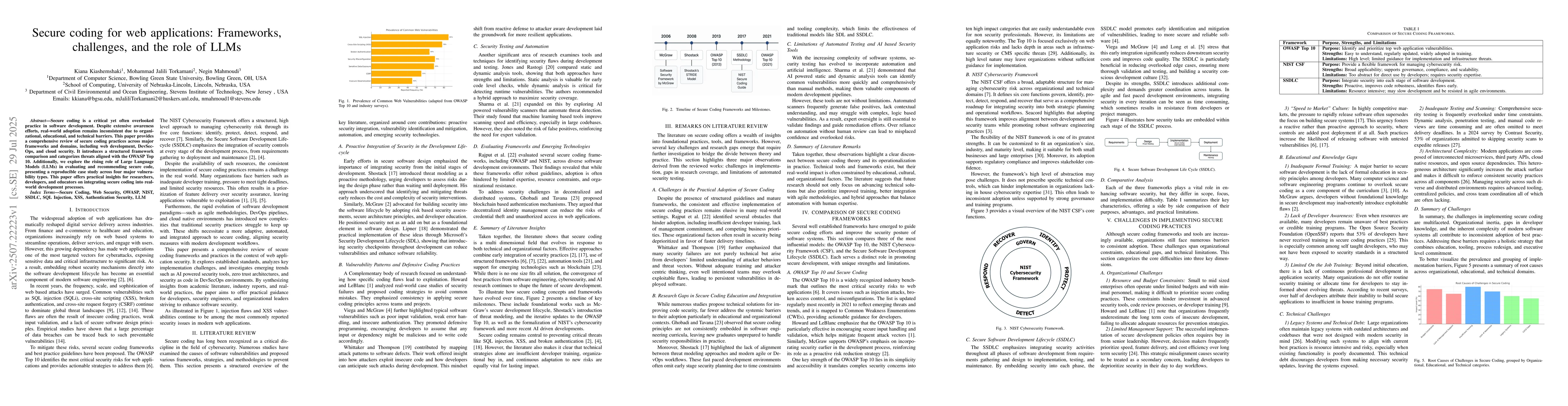 Secure coding is a critical yet often overlooked practice in software development. Despite extensive awareness efforts, real-world adoption remains inconsistent due to organizational, educational, and technical barriers. This paper provides a comprehensive review of secure coding practices across major frameworks and domains, including web development, DevSecOps, and cloud security. It introduces a structured framework comparison and categorizes threats aligned with the OWASP Top 10. Additionally, we explore the rising role of Large Language Models (LLMs) in evaluating and recommending secure code, presenting a reproducible case study across four major vulnerability types. This paper offers practical insights for researchers, developers, and educators on integrating secure coding into real-world development processes.