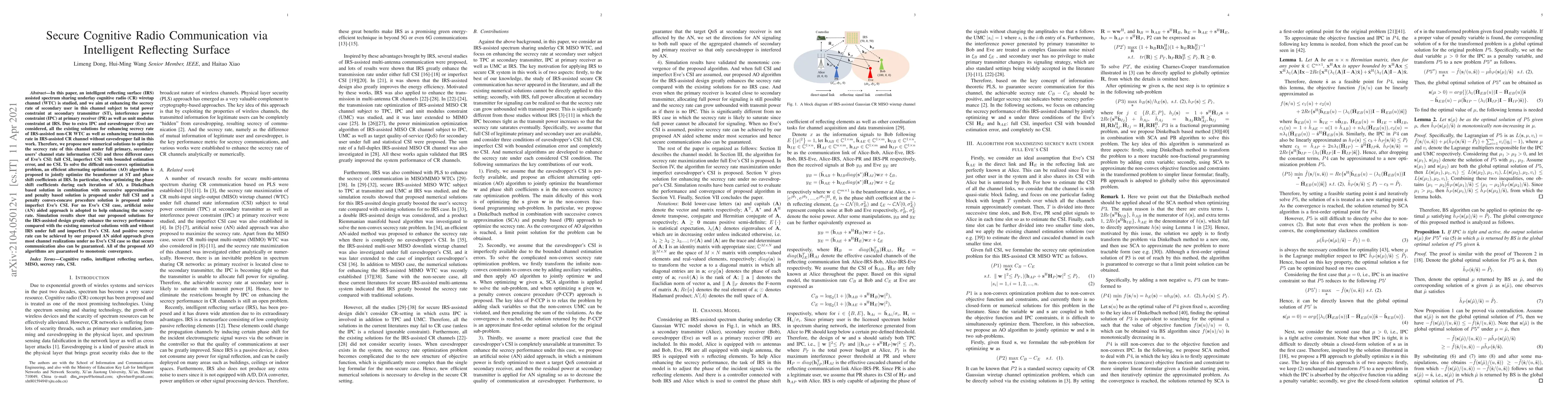 This paper proposes new numerical solutions to optimize the secrecy rate of an IRS-assisted cognitive radio wiretap channel, considering interference constraints and the presence of an eavesdropper. The proposed algorithms achieve enhanced secrecy performance under various eavesdropper channel state information scenarios, ensuring secure communication even without eavesdropper CSI.